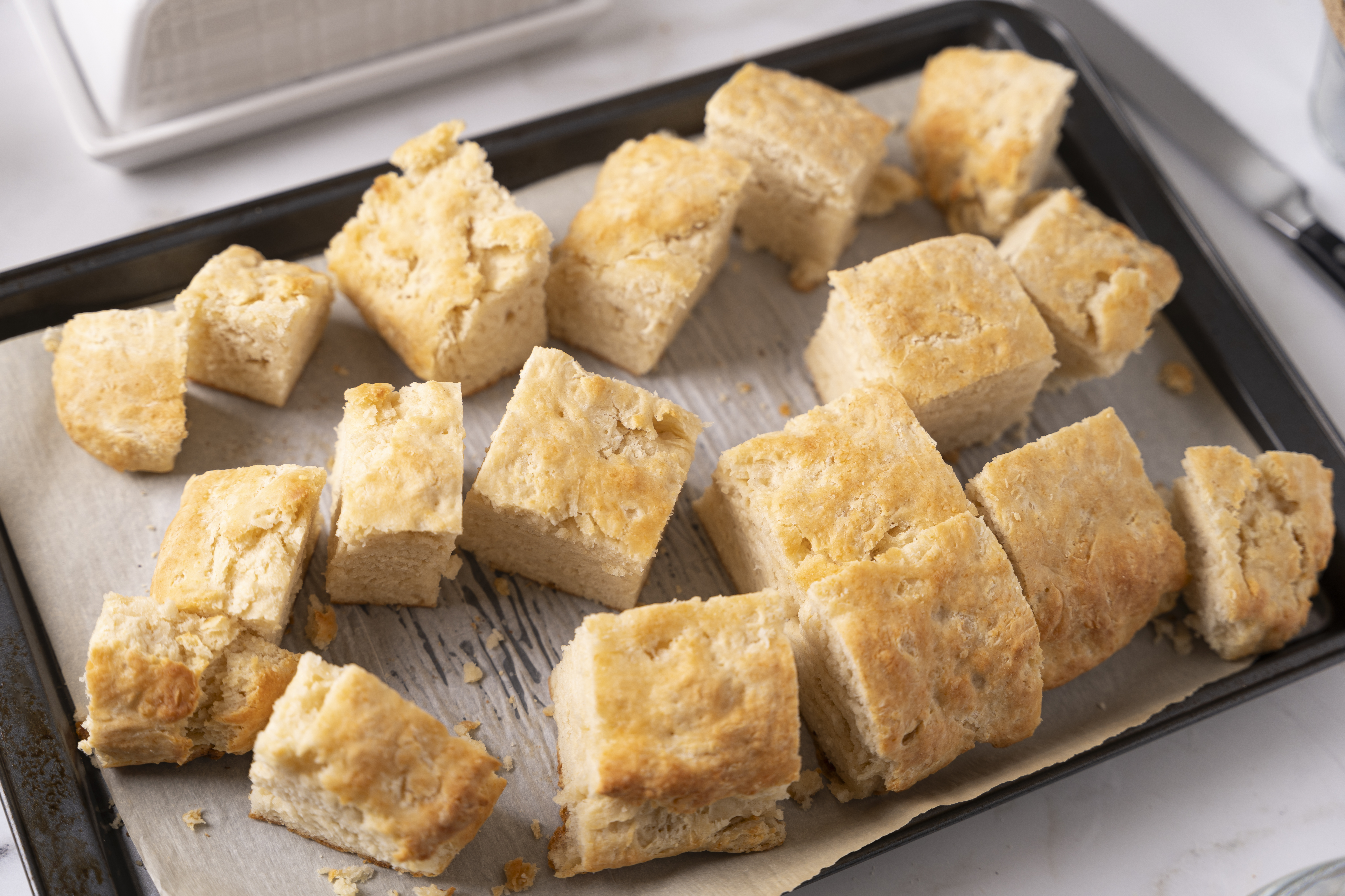 Step 3 -Add the butter cubes to the flour mixture and use a pastry cutter to cut them in until the mixture forms the consistency of small peas.
