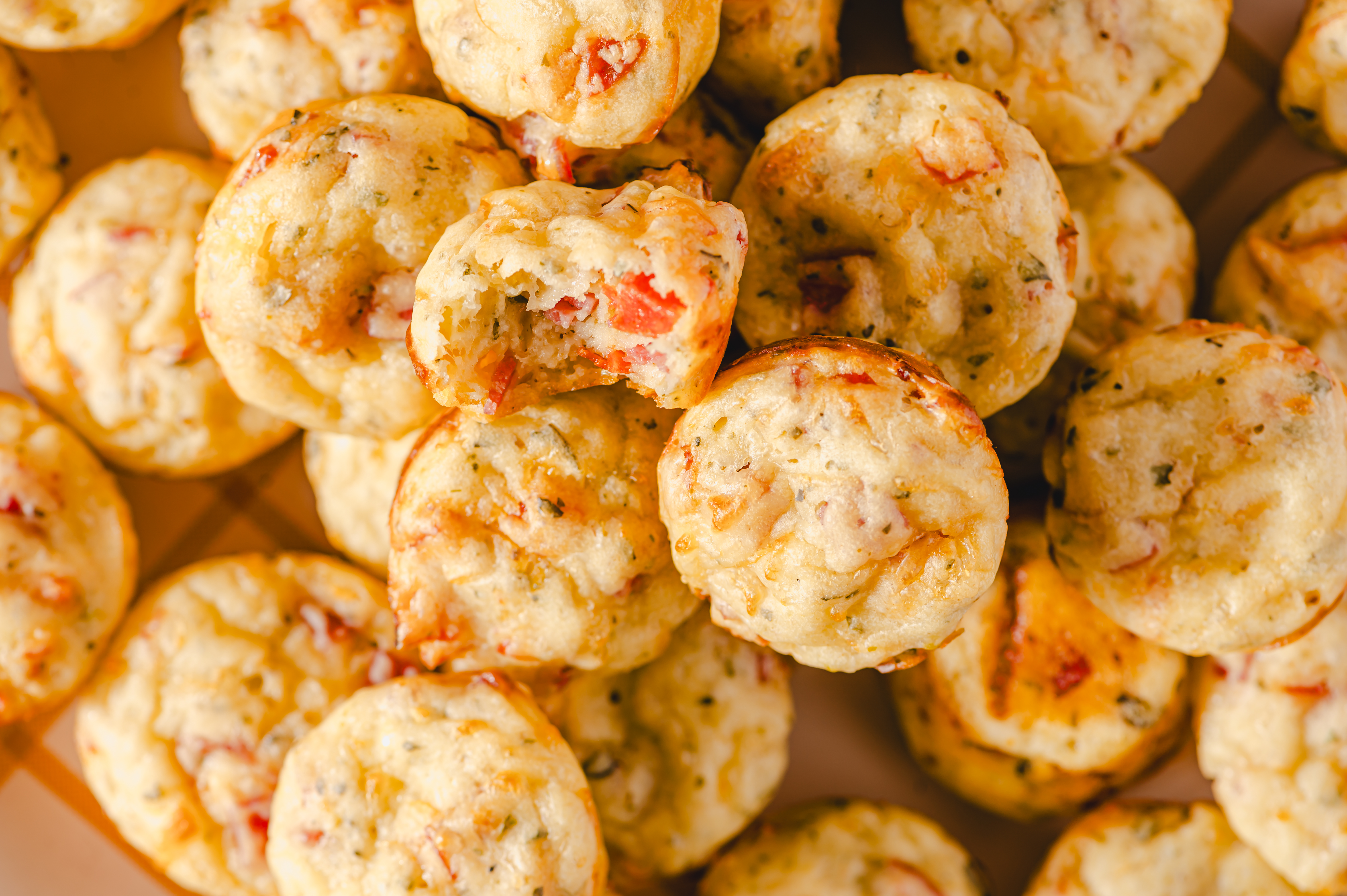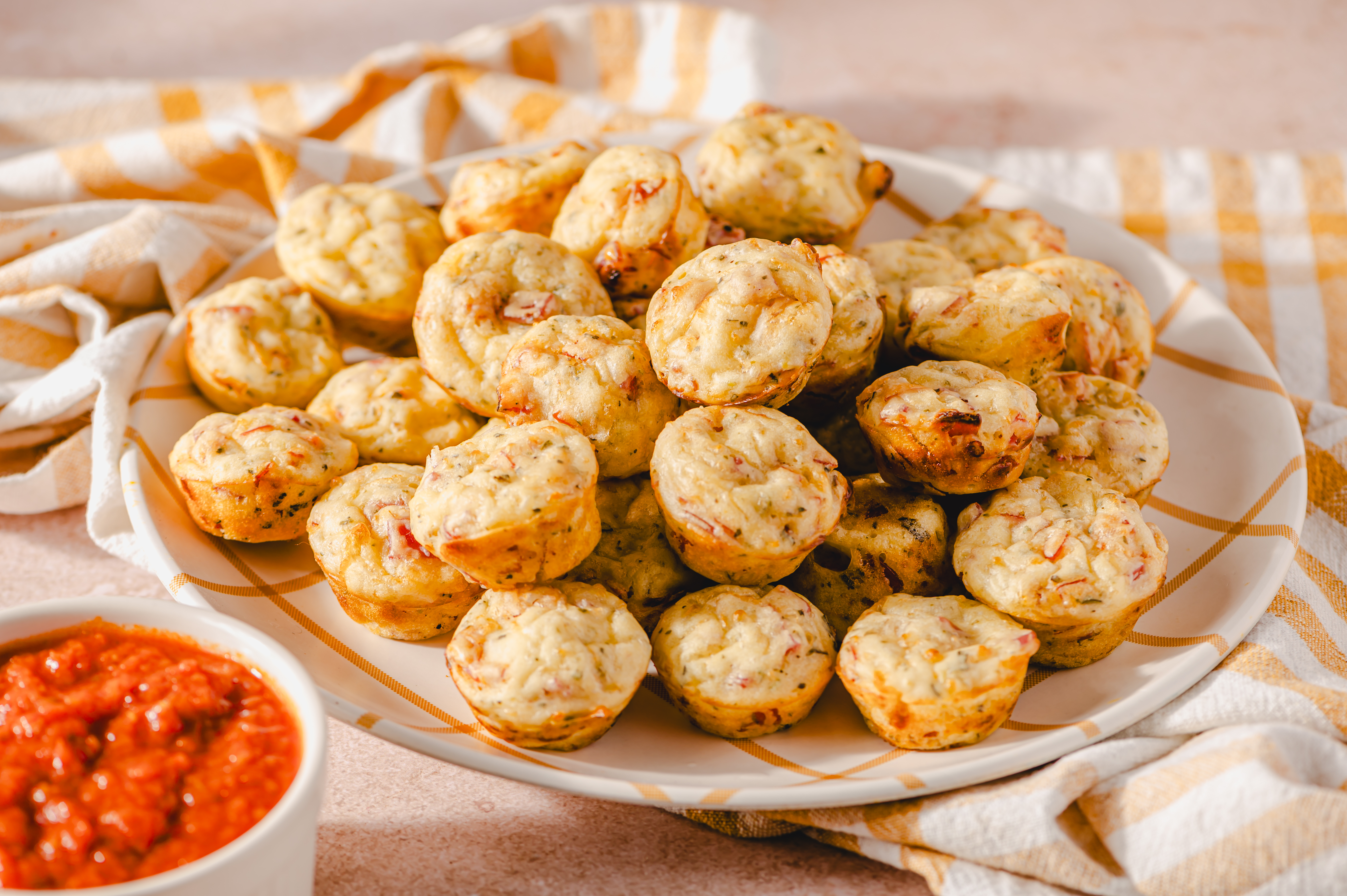 Mini Pizza Bites are not what you might expect... they're like if tiny calzones met tiny pizza bagels, but without the stuffing of the former or the bagel-ness of the latter. These golden-brown saucy treats feature beds of fluffy yet crispy crust with classic pizza topping meats for succulence and melty cheese for... well, cheesiness! Mini Pizza Bites are tiny little snacks that add up to a whole pizza party for your taste buds!