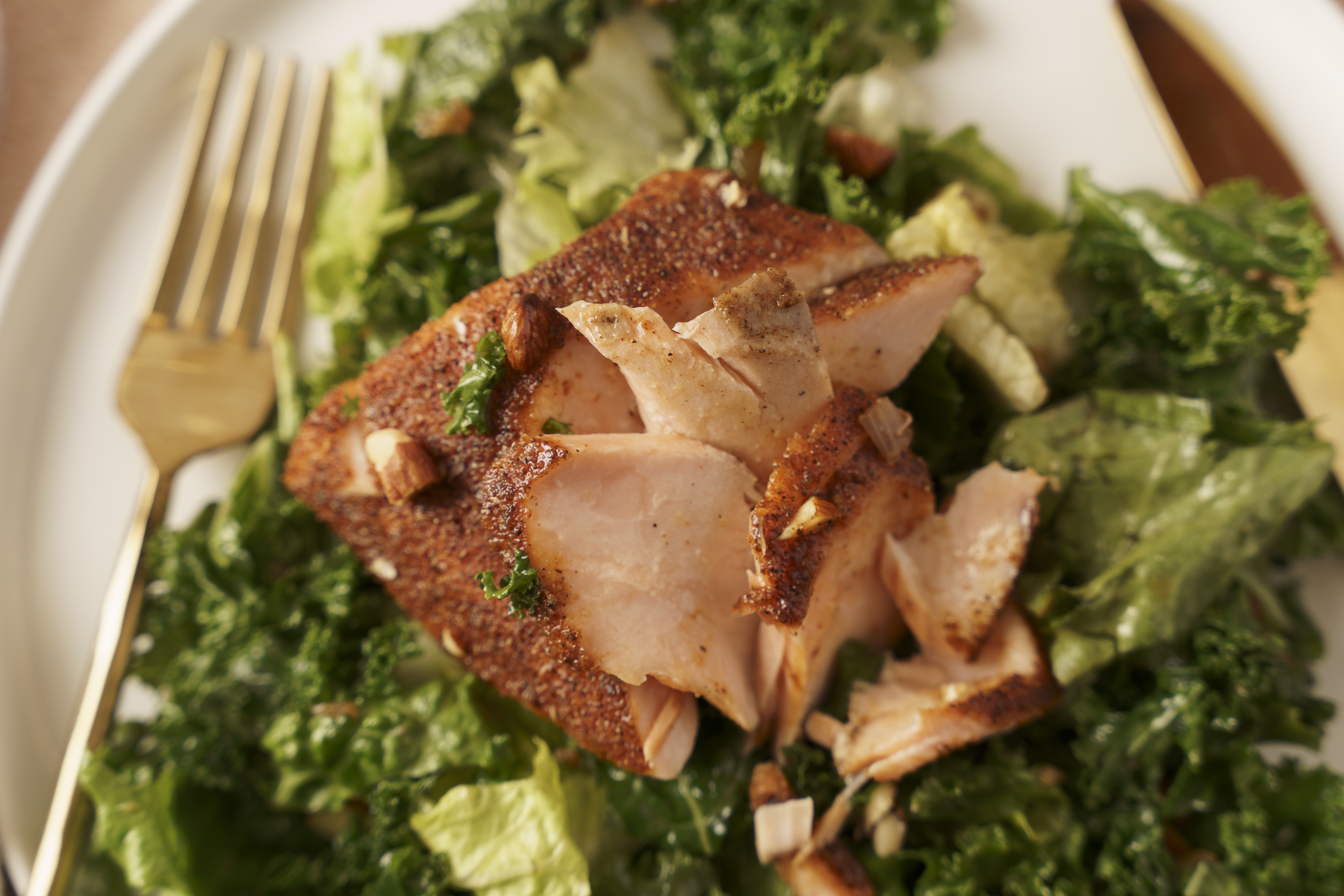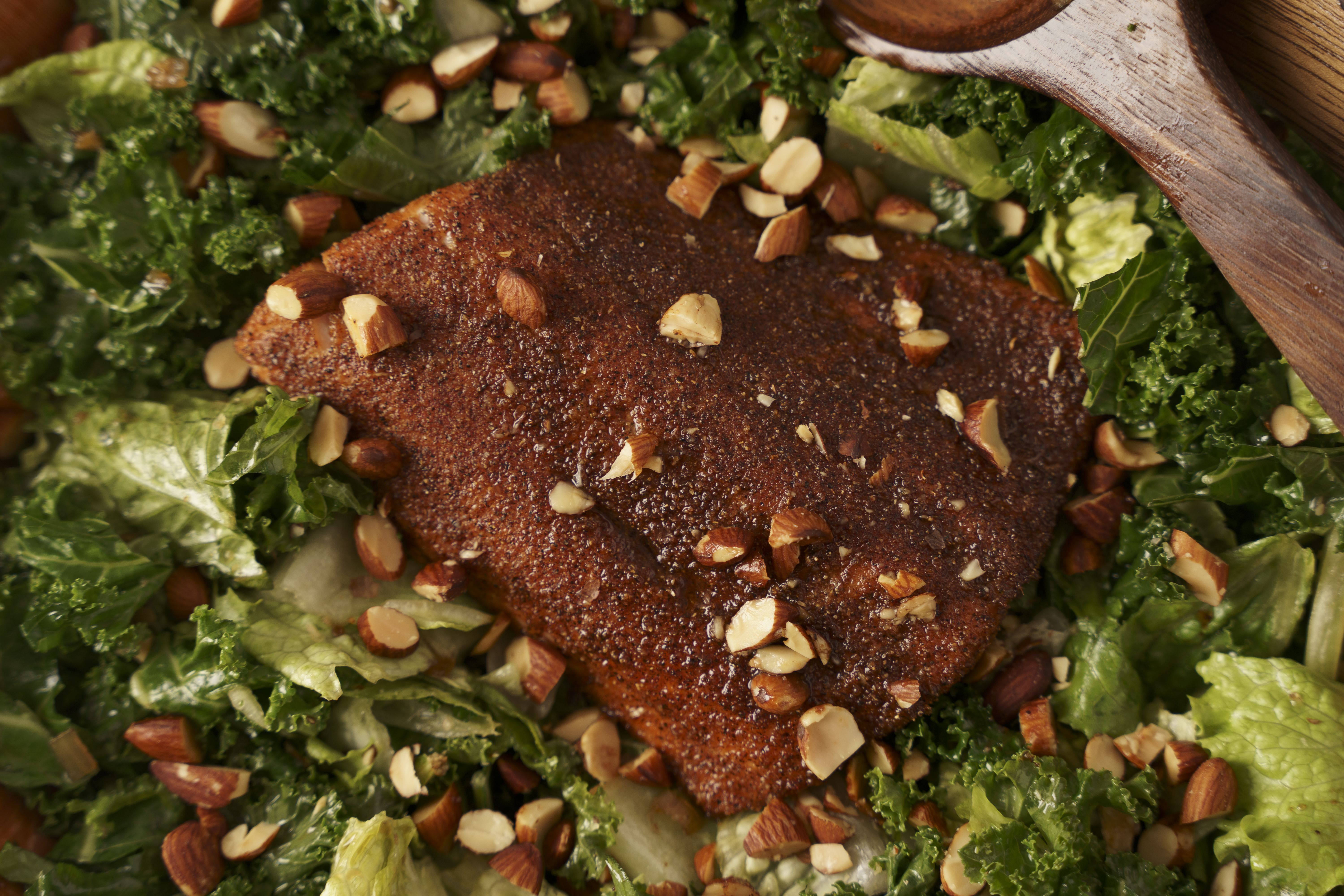 Looking to lighten up a little bit? On-The-Skinny Salad is the easiest, best way to get in the habit of eating healthy! All it takes is a bed of fresh, crispy lettuce, a perfectly tender piece of salmon, and a sweet-and-tangy, homemade dressing. Loaded with all sorts of flavors, On-The-Skinny Salad will have you feeling amazing in no time!