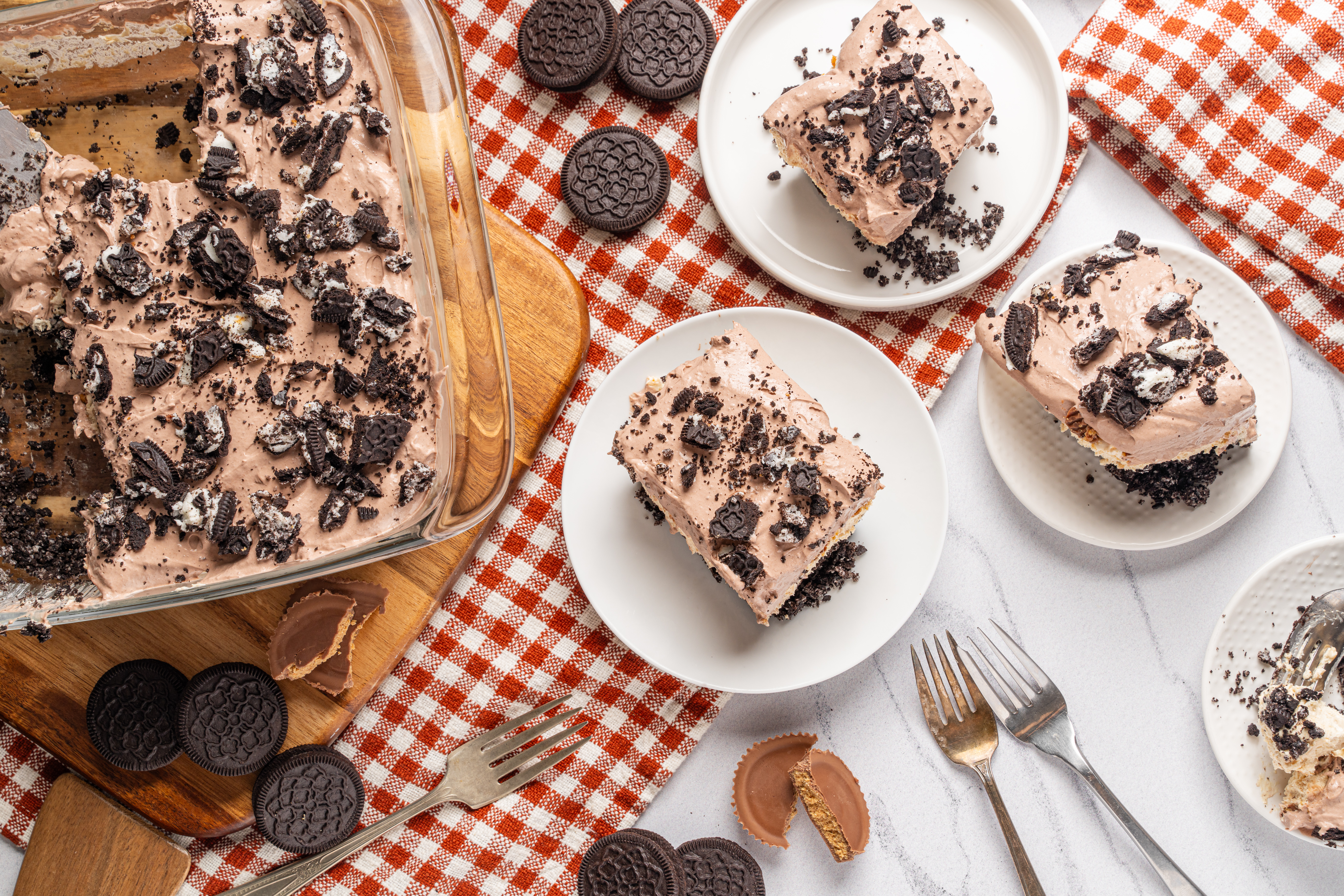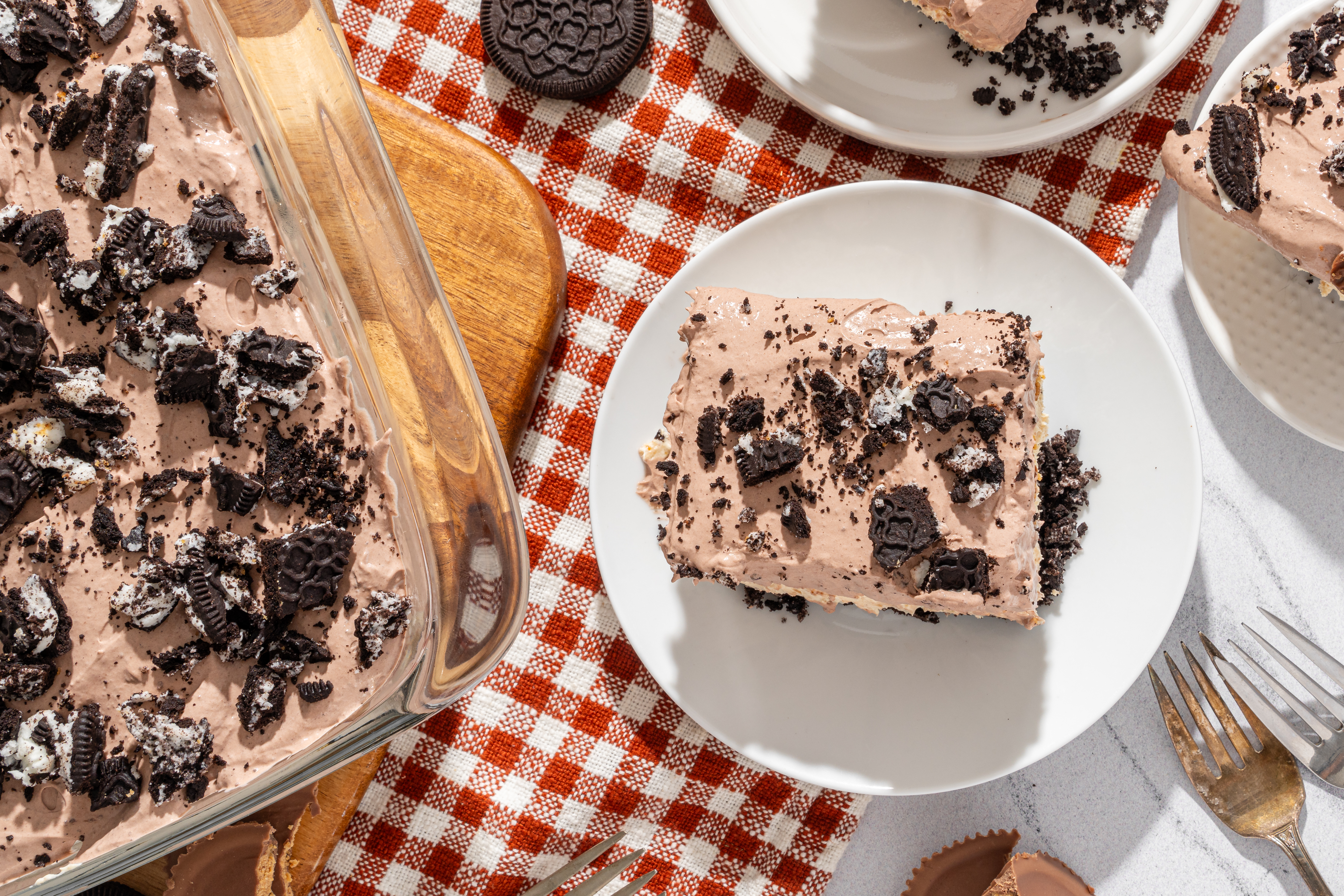 No classic sweet combination quite hits the same way as peanut butter and chocolate, right? Peanut Butter Cup Casserole certainly thinks so, which is why it's bringing the best of both straight to your taste buds! Combine a crunchy, buttery cookie crust, a nutty peanut butter filling, a fluffy chocolate pudding layer, and you have a winning dessert! Peanut Butter Cup Casserole is like the best version of the best candy in layer-form!