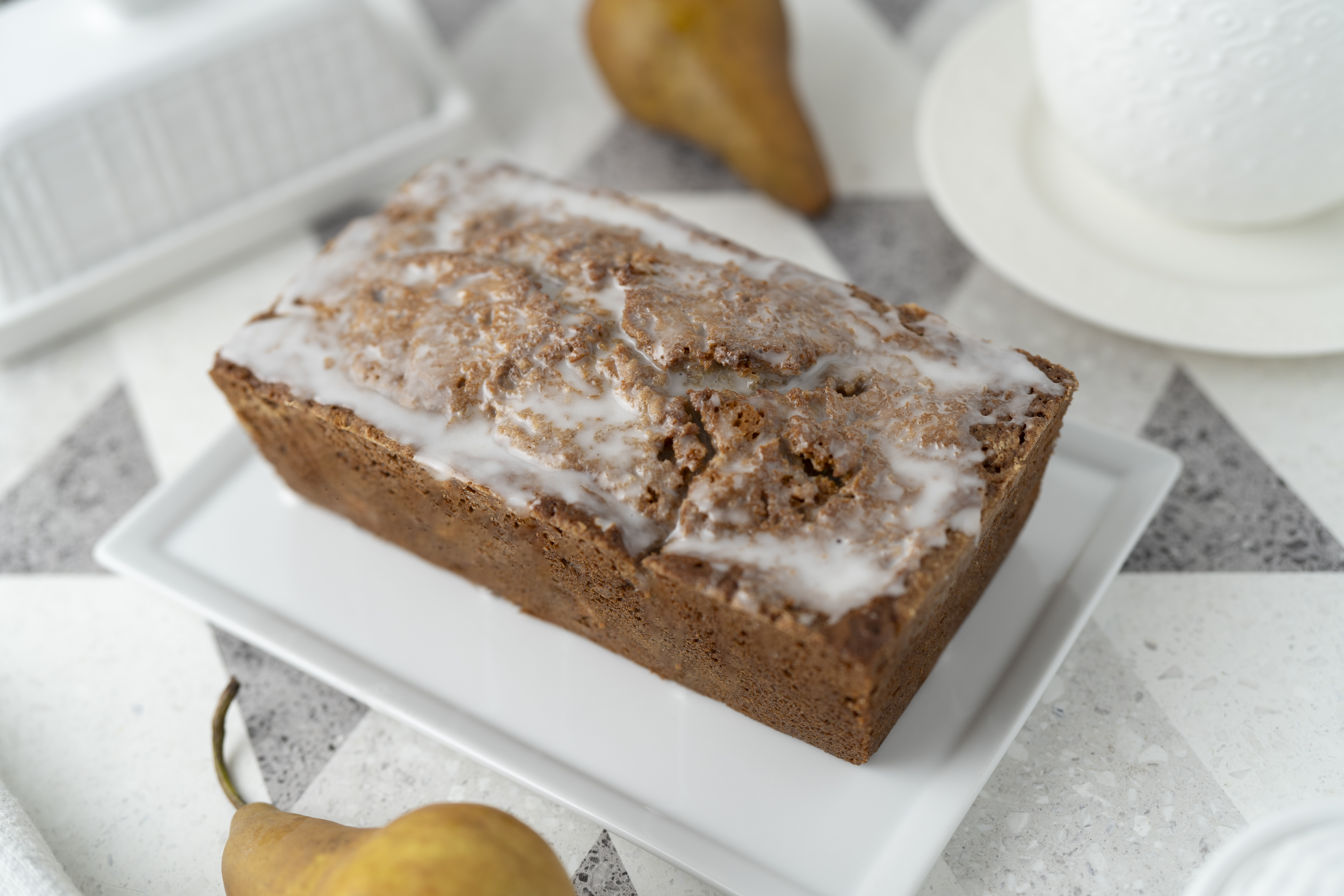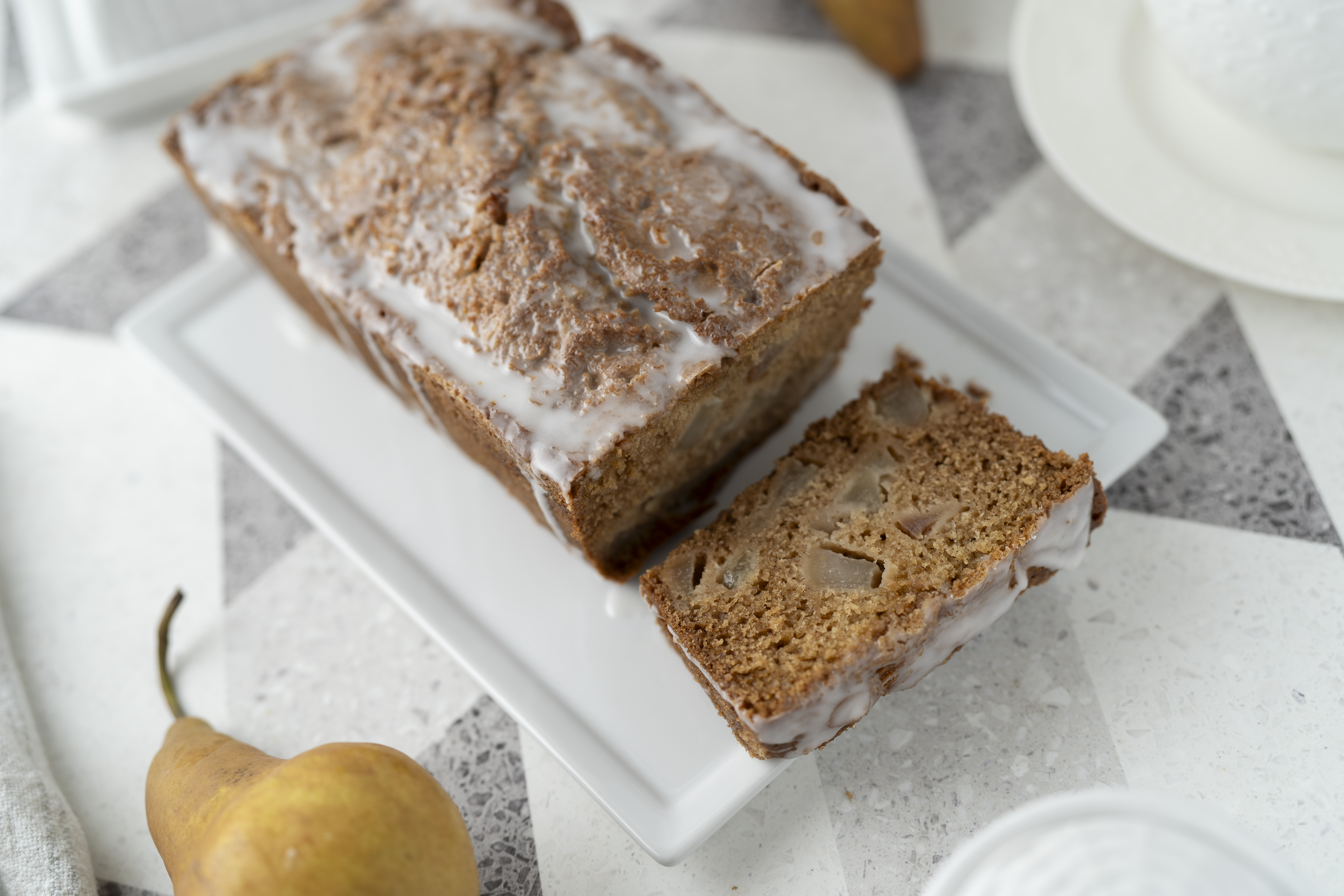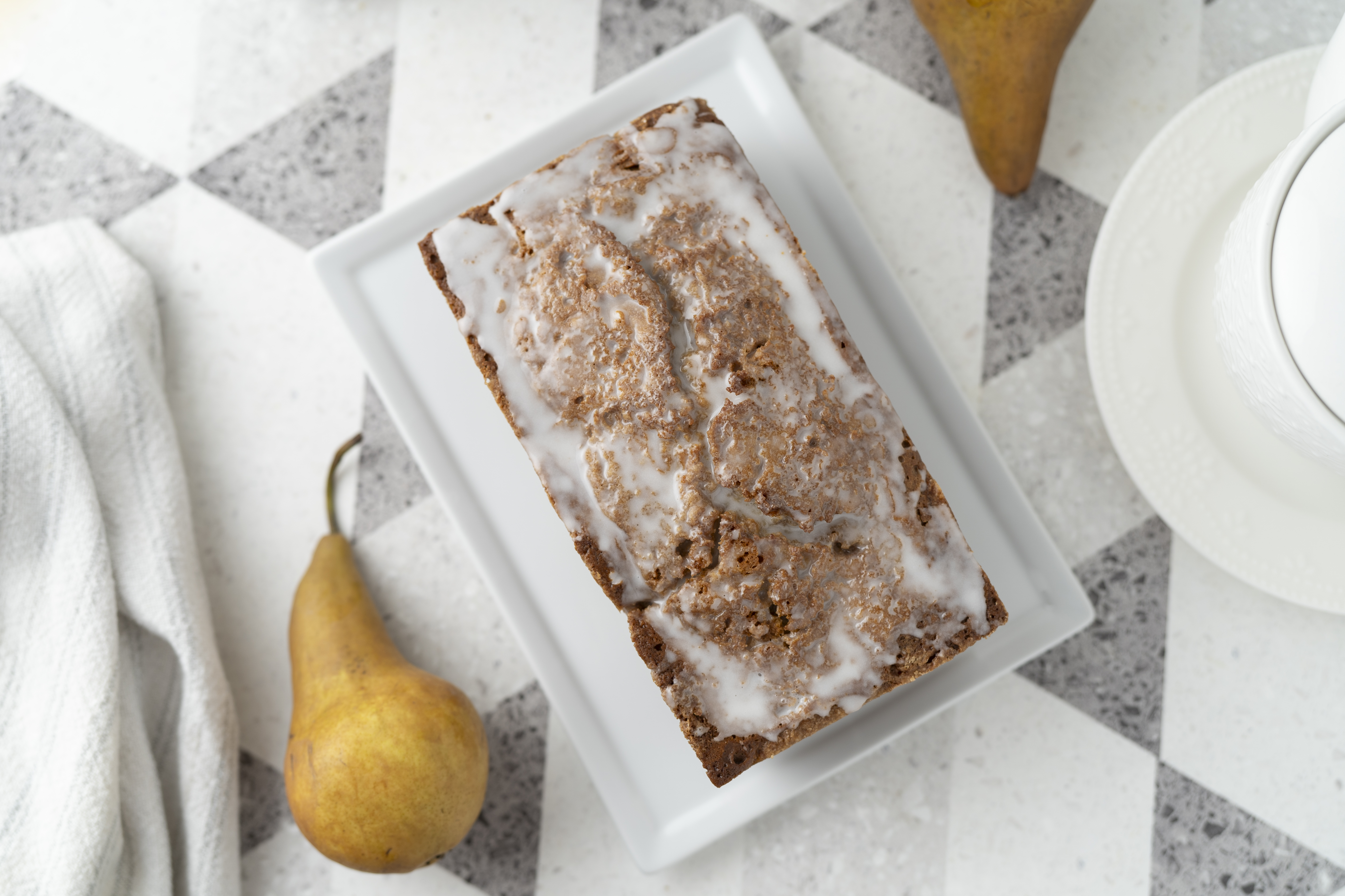 Perfect Pear Bread really does love pears. Those oft-forgotten fruits, with their juiciness and sweetness, are beautifully blended into the sweet and tender brown bread throughout so each slice is loaded with pear flavor! With almond flavoring in the creamy glaze and the bread itself to accent the sweet pear goodness, Perfect Pear Bread really does make the fruit the star of the show.
