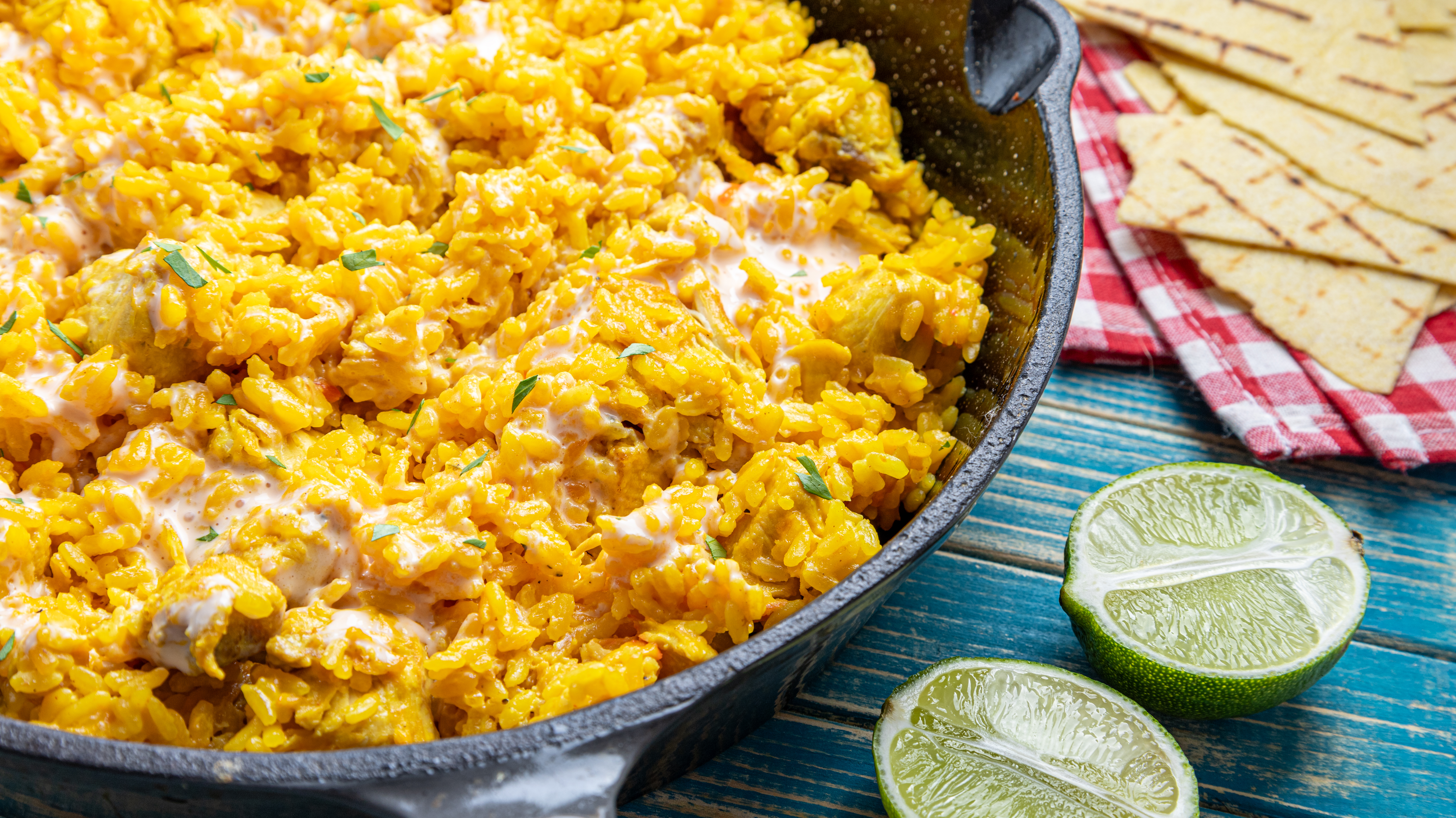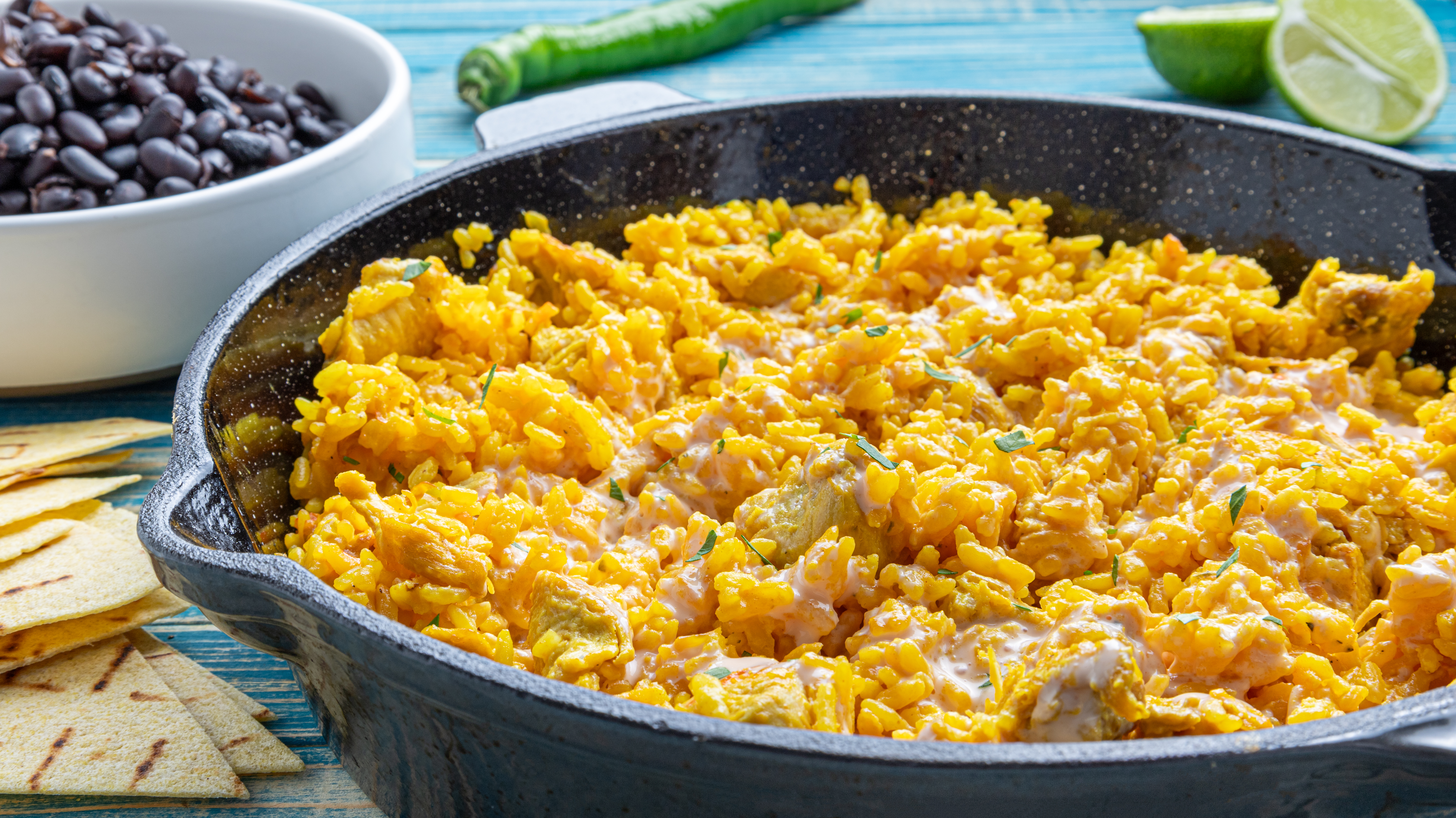 Pollo Loco Dinner delivers up some crazy flavors and does so with even crazier speed! Adobo-seasoned chicken, pan-seared then cooked with fluffy saffron rice offers up some insanely zesty, spicy flavors! Then it gets some creamy queso tossed with it! You'd be nuts not to love this Pollo Loco Dinner! Spice up your night!