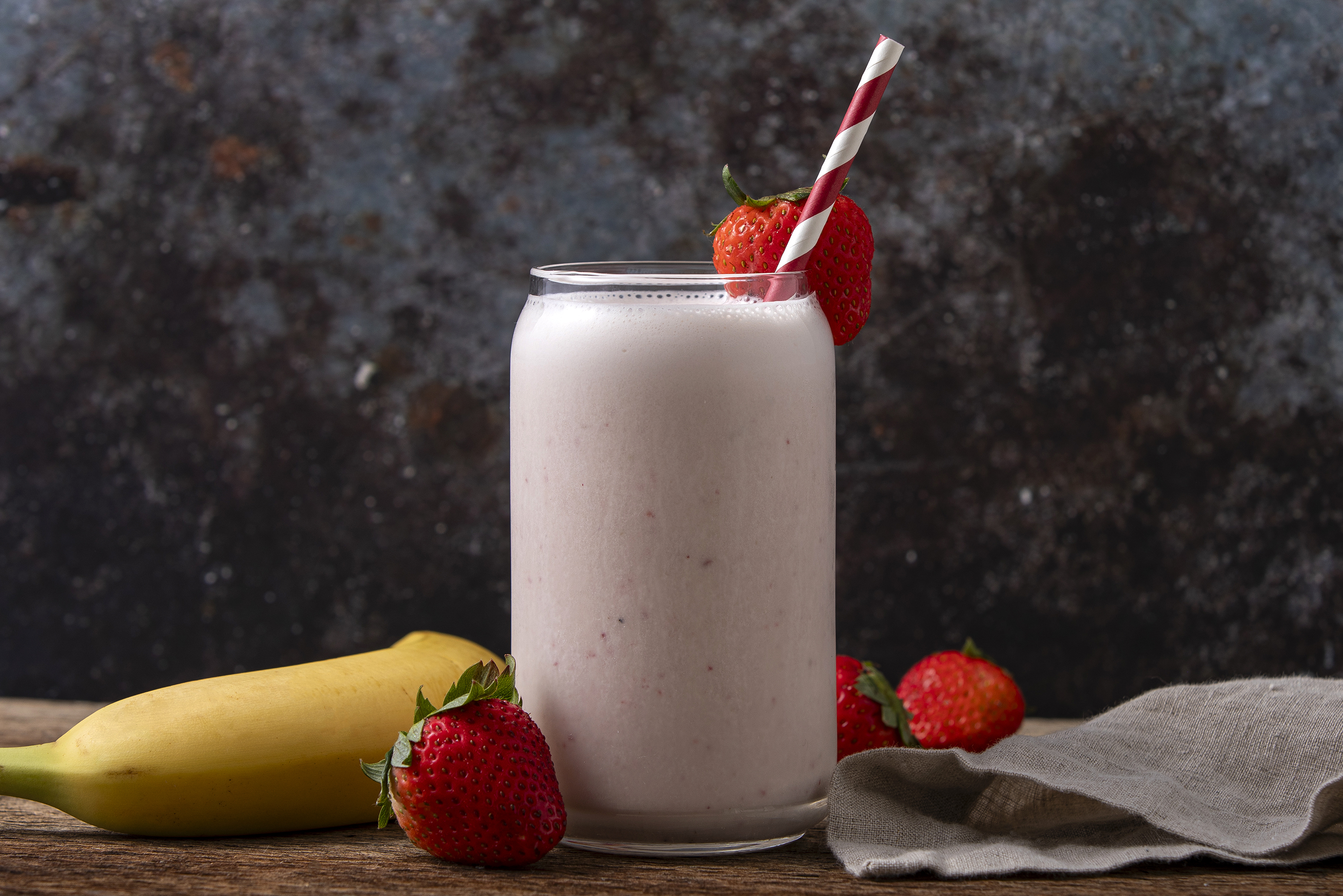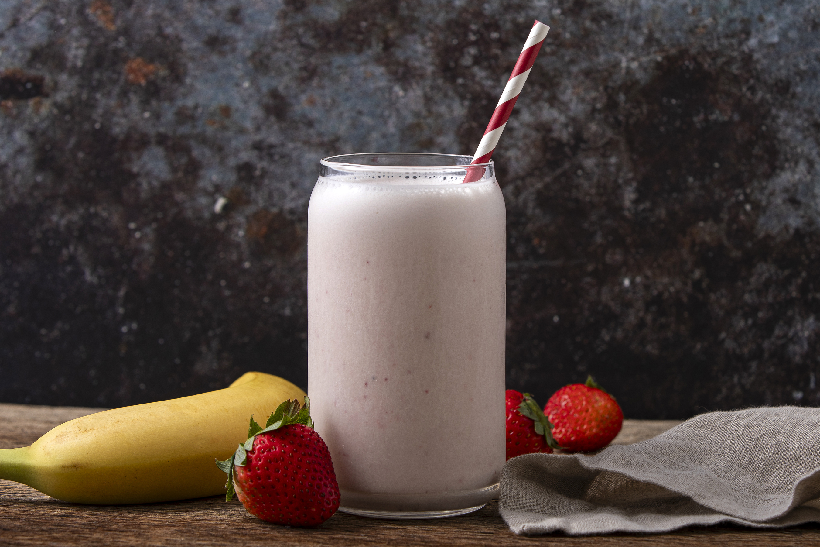 The Pudding Milkshake is a new take on the beloved dessert drink... one without any ice cream. Instead, blended white chocolate pudding becomes the core of this thick and creamy refreshment, elevated with tropical banana and sunny and sweet strawberry! Light and lip-smacking delicious, Pudding Milkshake is exactly what you need to cool down when the sun is bearing down!