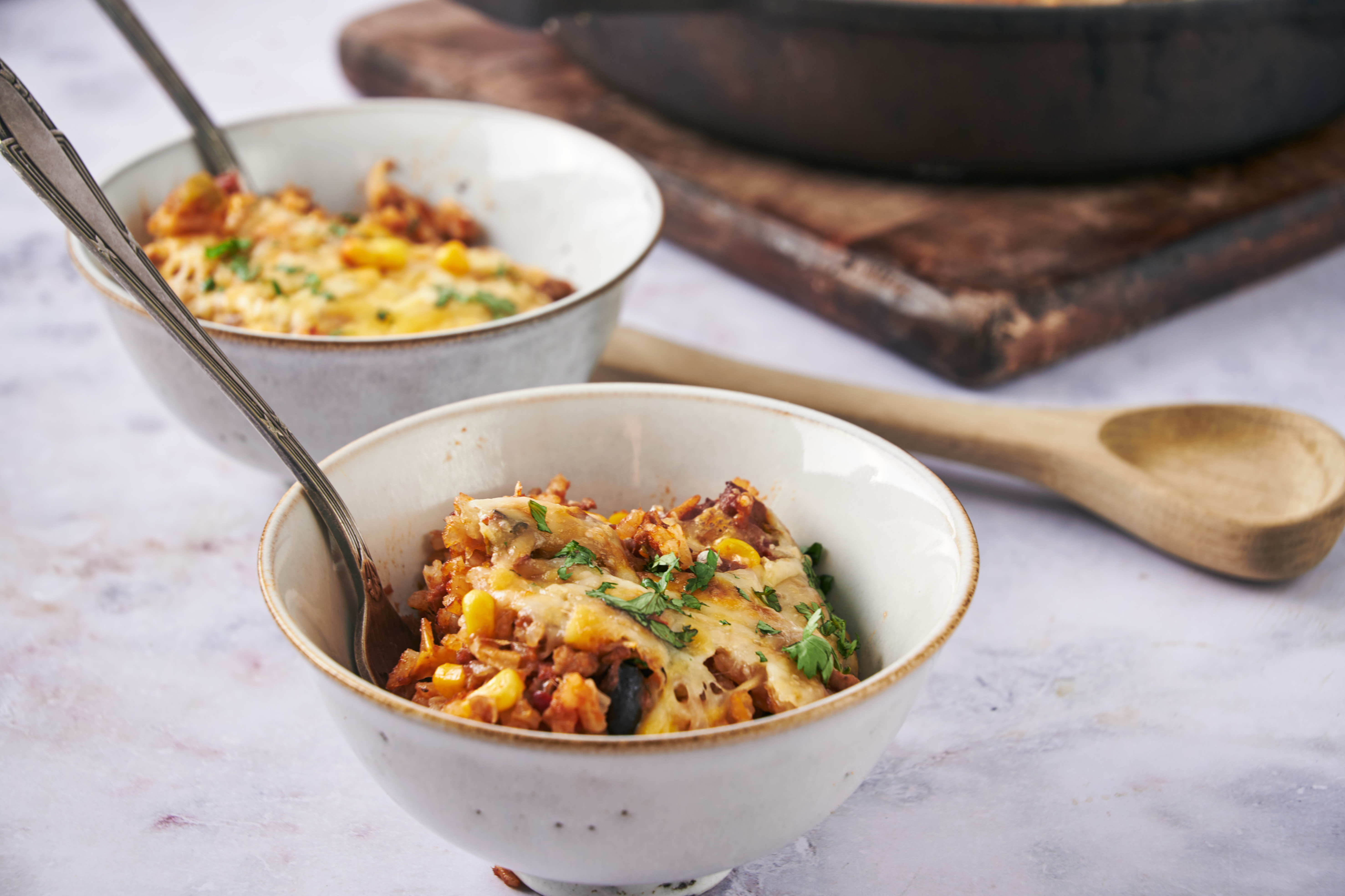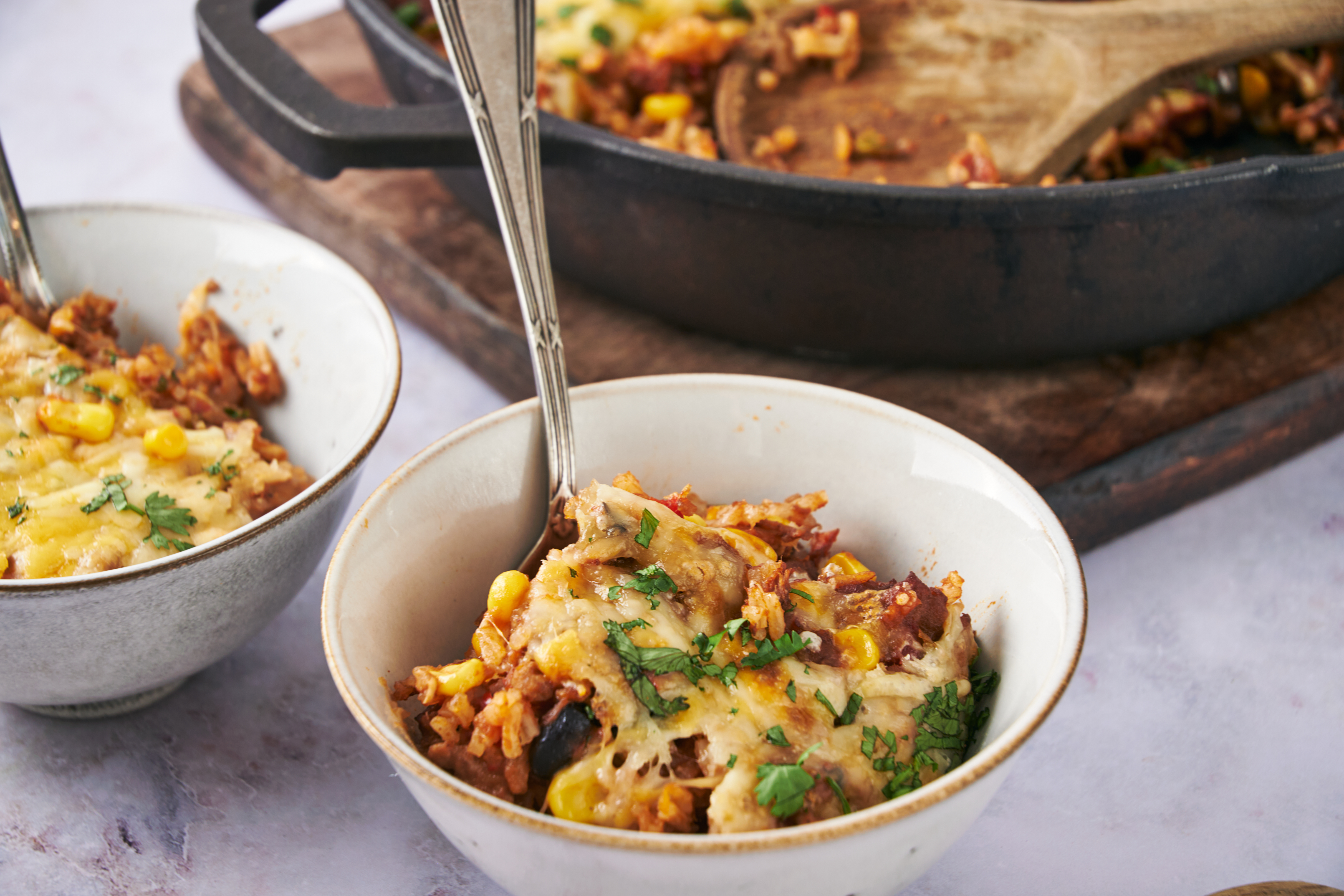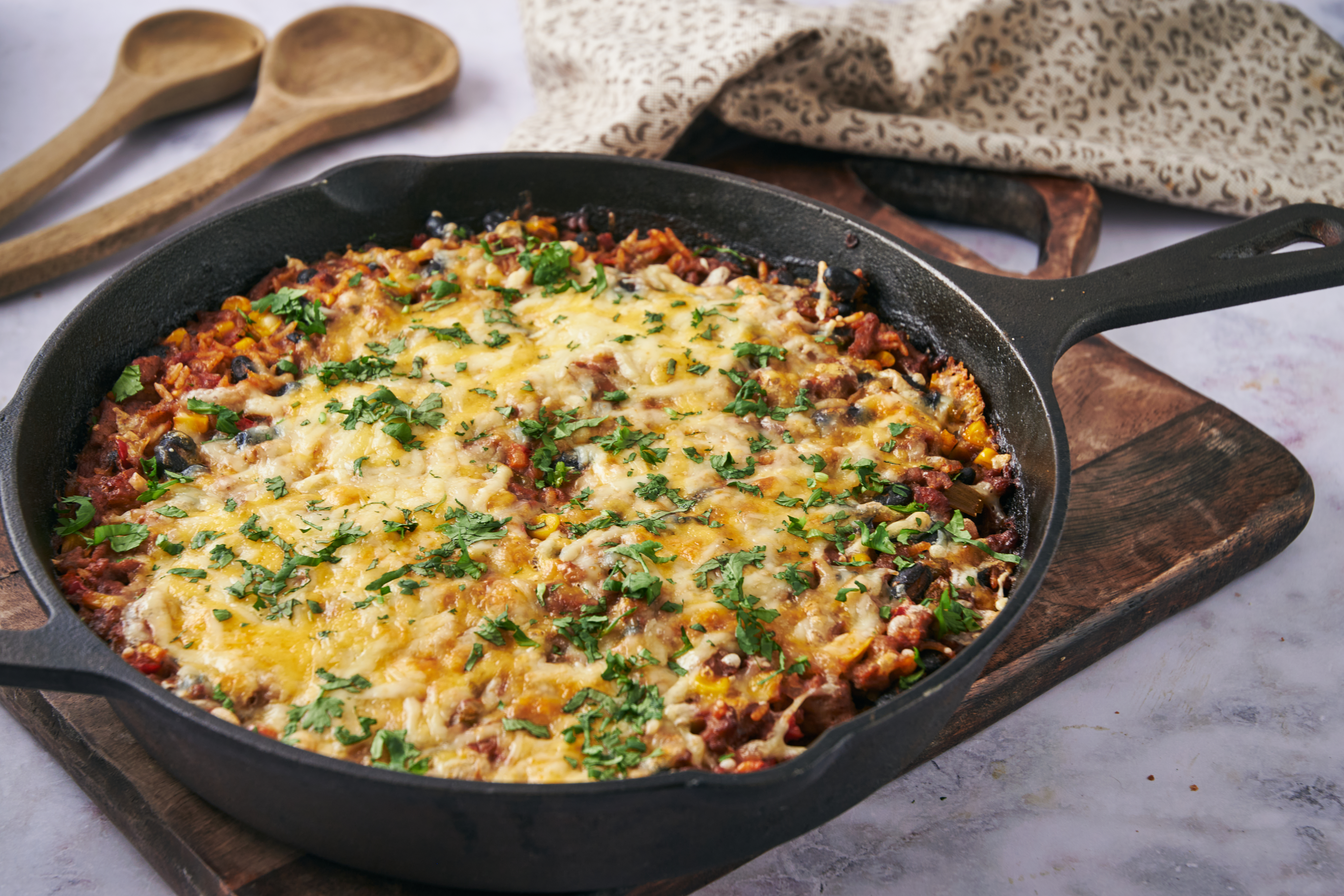 Riquísimo Bake translates directly to "Delicious Bake." When you try this Tex-Mex casserole for yourself, you're sure to agree! A fluffy bed of rice is cooked in beef broth so each bite is savory and succulent, and it's mixed with juicy taco meat, tender sautéed fajita veggies, and vibrant salsa. Topped with melty cheese, because neither Tex-Mex nor casseroles are really complete without cheese, the Riquísimo Bake sets out to wow and dazzle the senses! Dinner is definitely served!