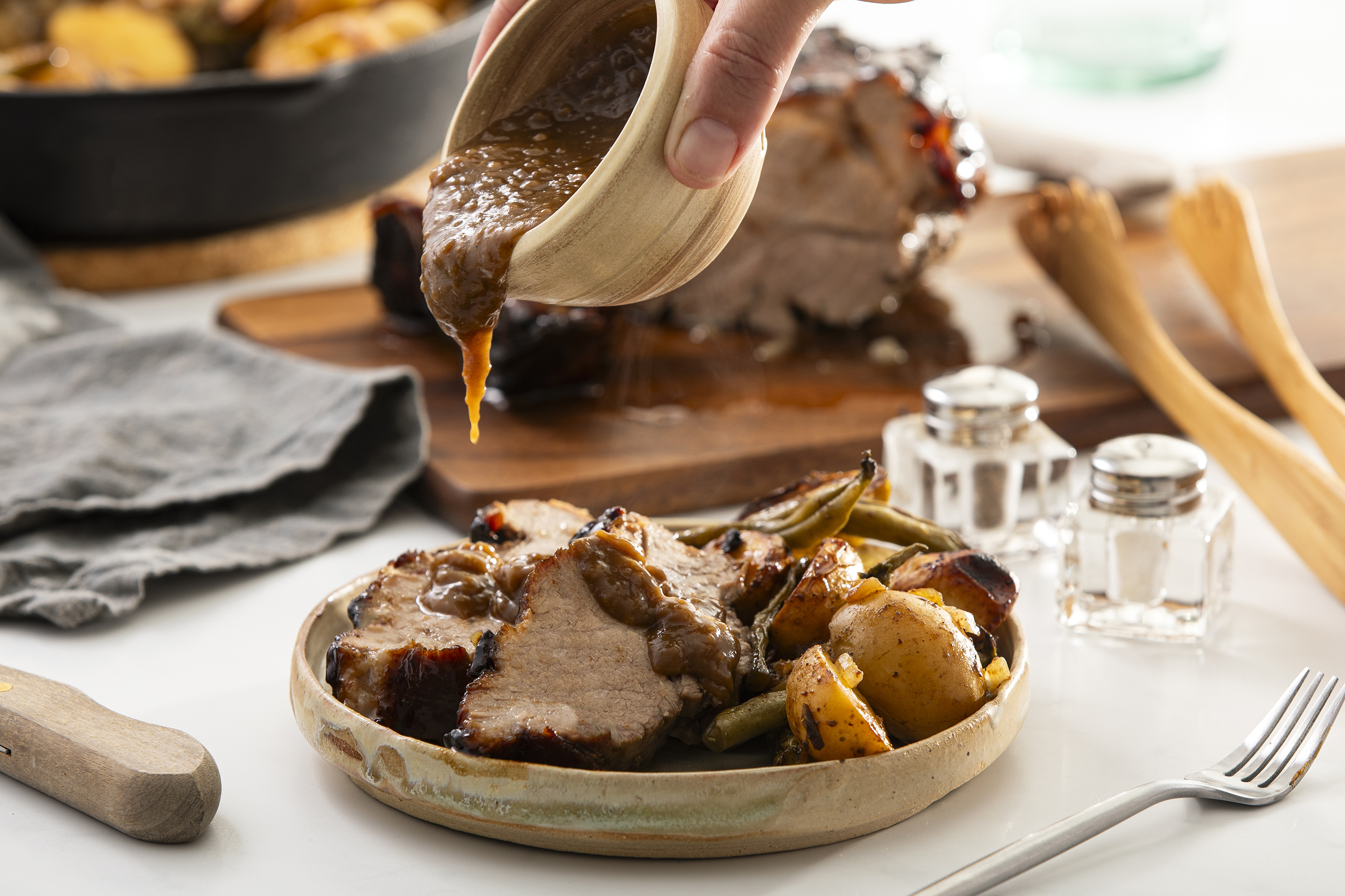 Step 22 -Serve the pork and the potato mixture with the gravy.