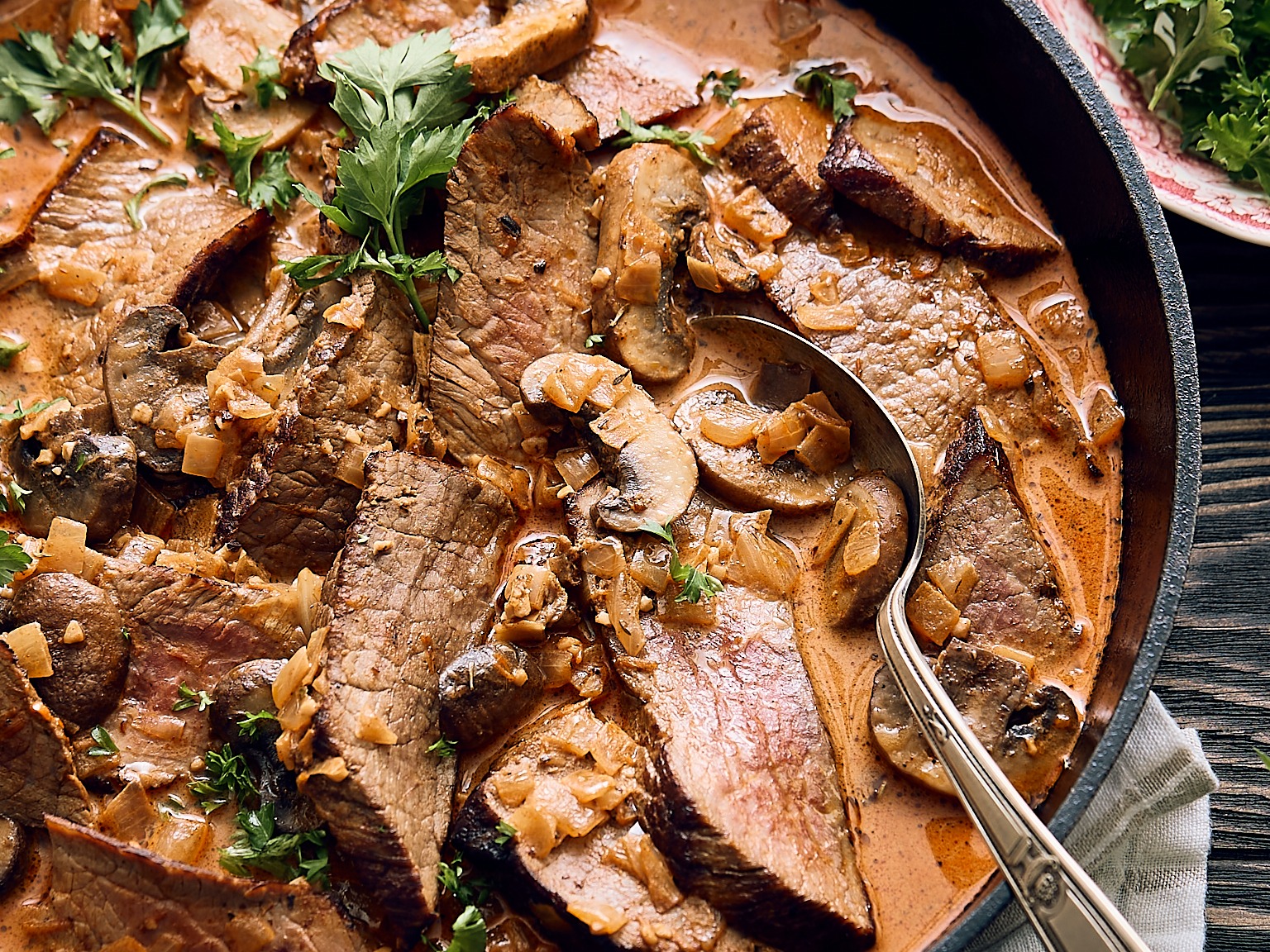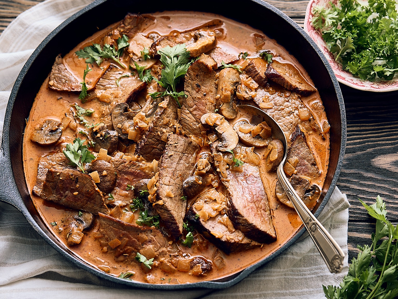 Step 7 -Serve the beef stroganoff garnished with the parsley.