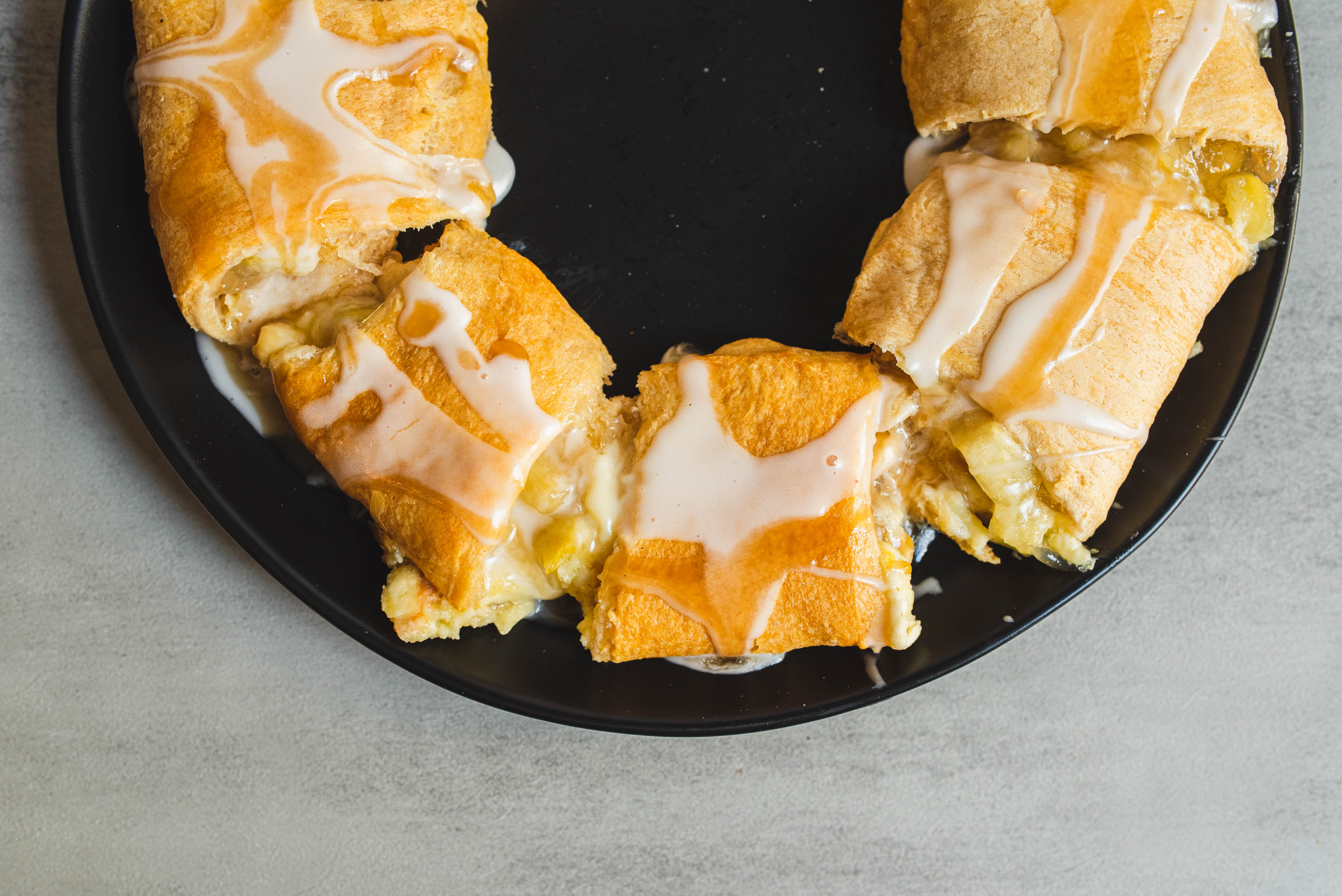 Step 22 -Drizzle the glaze over the cooled crescent ring.