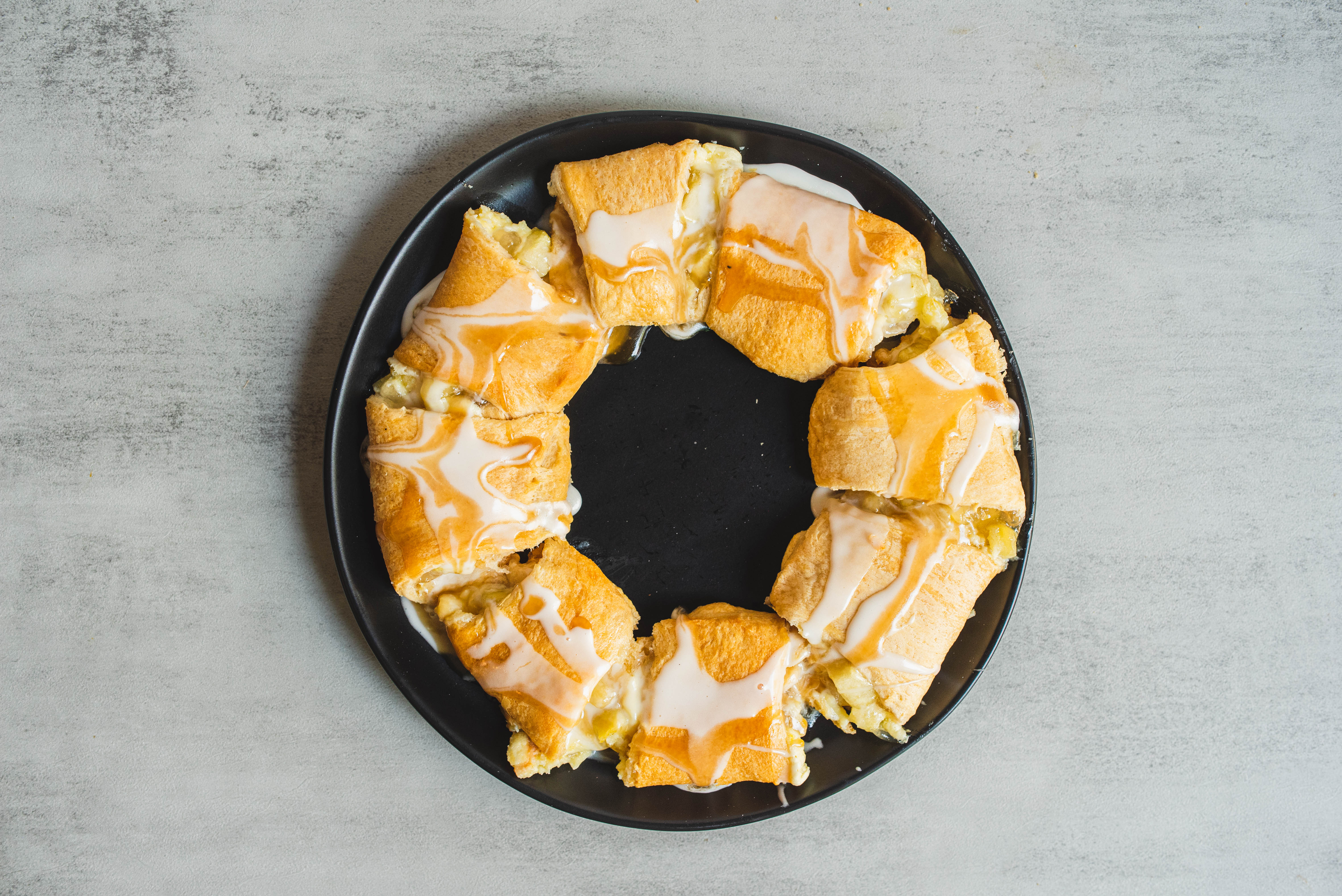 We know you want to pop the question, so we give you our blessing! Yes, you can serve this Rules-of-Engagement Ring at your party and trust us, you won't ever regret committing to making it for dessert. Each slice is like a crispy, golden pillow that is filled with a creamy, cinnamon-y, sweet apple concoction... and since it's shaped like a ring, it's delicious flavors go on and on for what seems like eternity! Top it with the sweet glaze and the caramel-y drizzle, then get everything ready... it's almost time for the big moment! Everyone will be squealing with delight as they say "yes" to enjoying piece after piece of this Rules-of-Engagement Ring! You made the best decision ever!