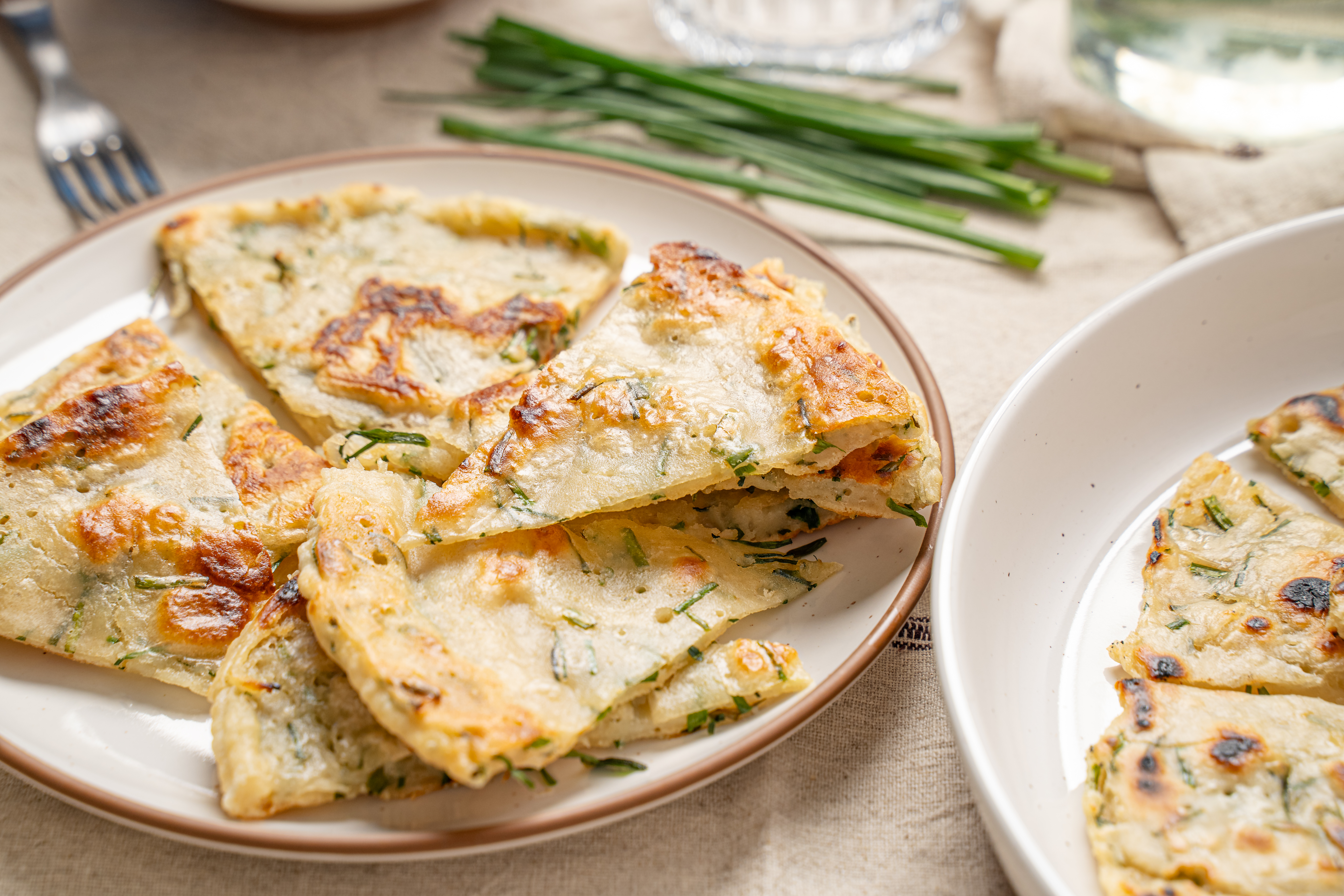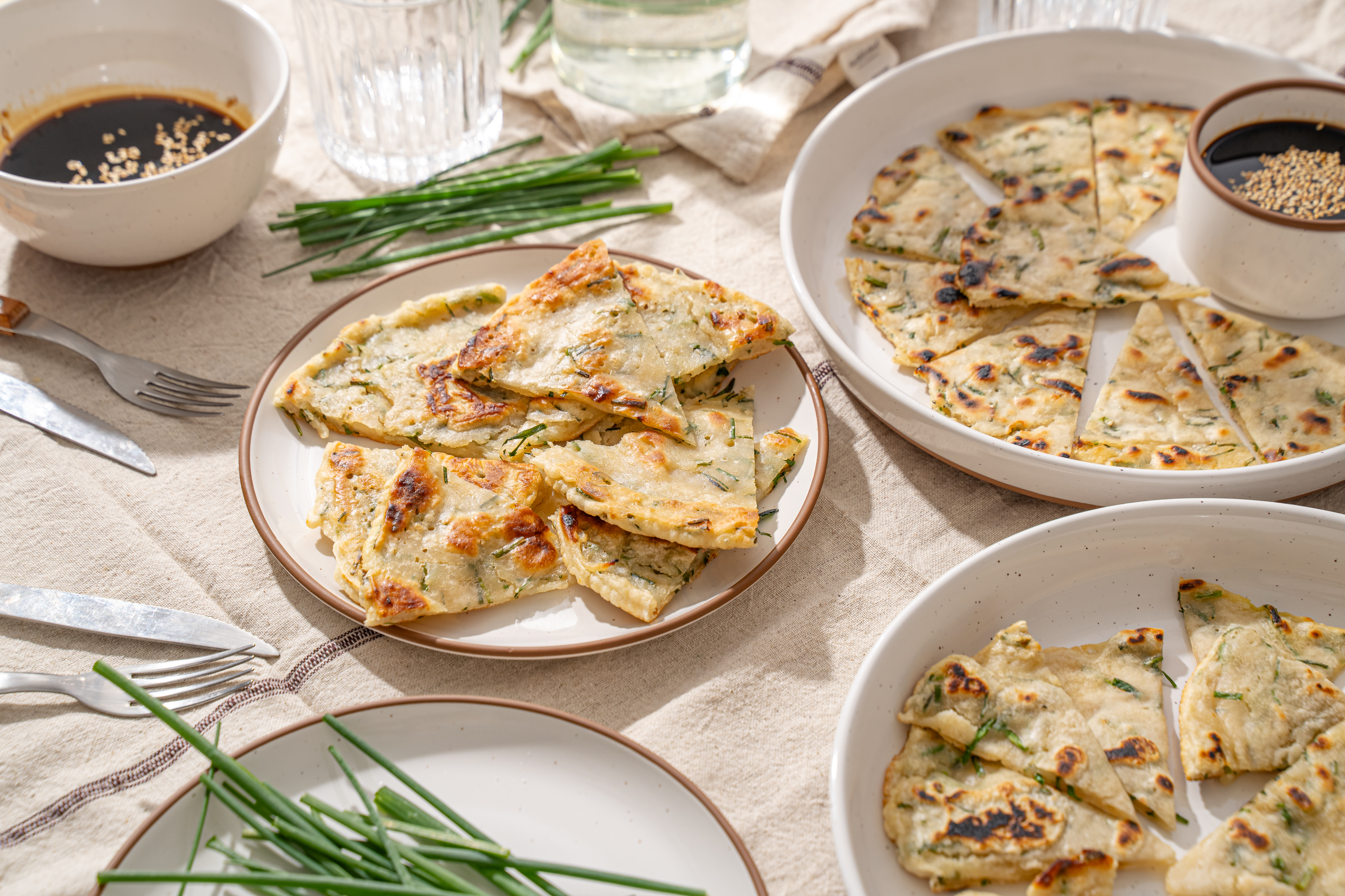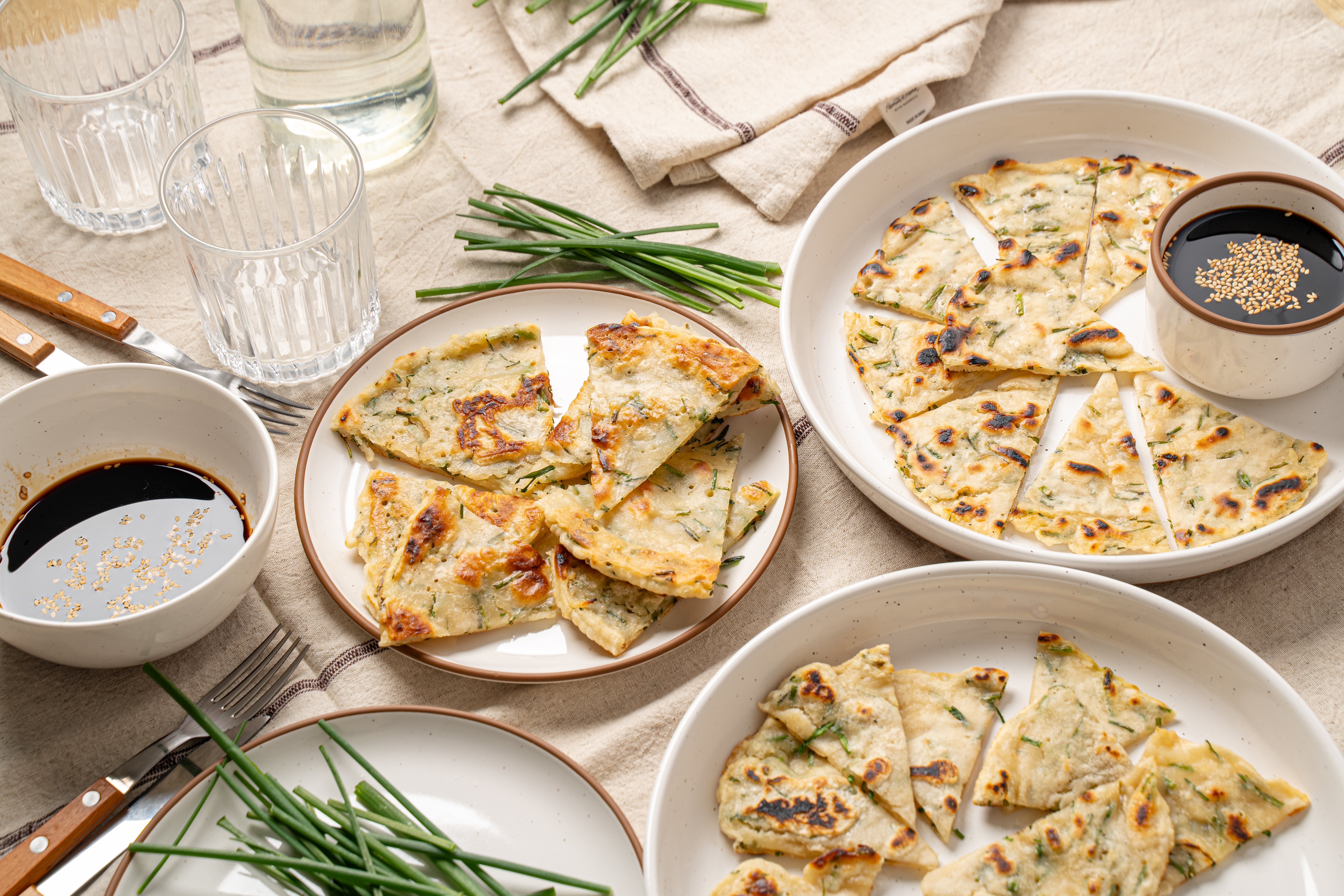 This Asian-inspired treat is just what you need to serve alongside homemade fried rice, sesame chicken, or even your morning eggs! Savory Chive Pancakes are crispy on the outside, fluffy on the inside, and infused with the light onion flavor of chives throughout! They're also a breeze to make, they're ready in under an hour, and are perfect for dipping! So versatile and delicious, Savory Chive Pancakes are the kind of dish you can't get enough of!