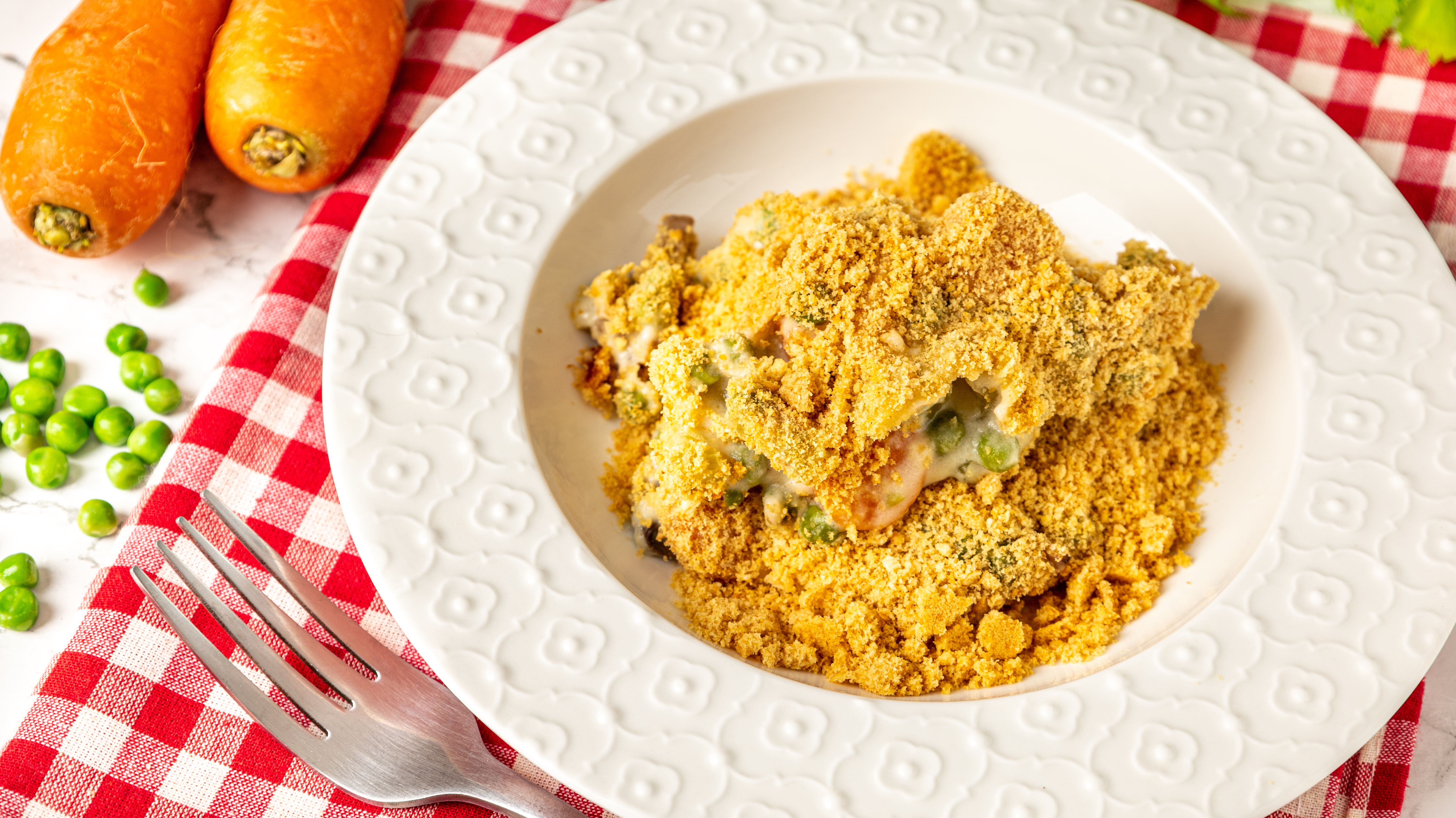 Vegetarian food just elevated its game! This Scalloped Vegetable Bake coats bright carrots, crispy celery, and beefy mushrooms in a creamy sauce with just a kick of tangy mustard. Then, everything gets topped with crunchy breadcrumbs and sharp parmesan! Whoever said vegetables are boring hasn't tried the Scalloped Vegetable Bake... but once they do, they'll be convinced otherwise!