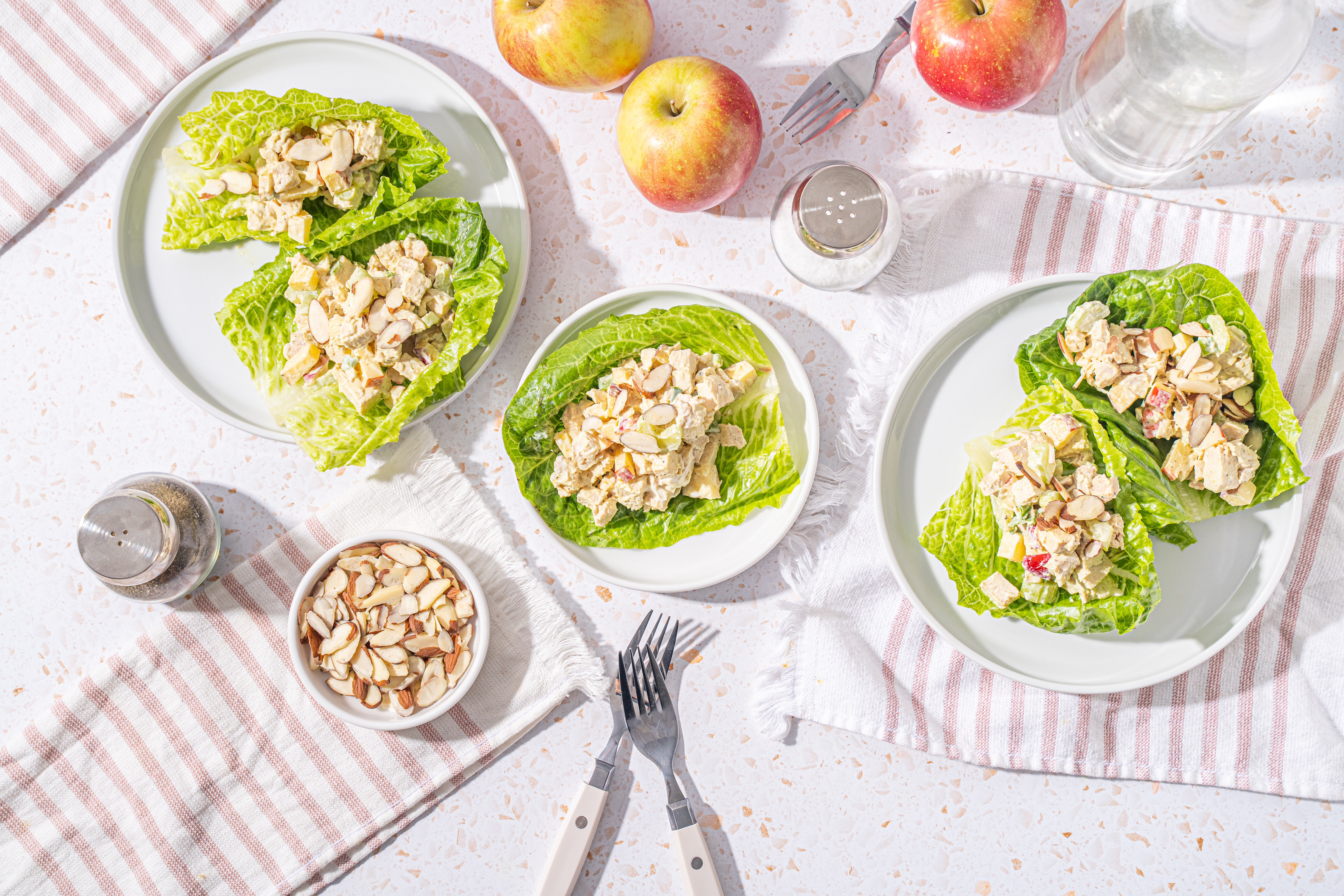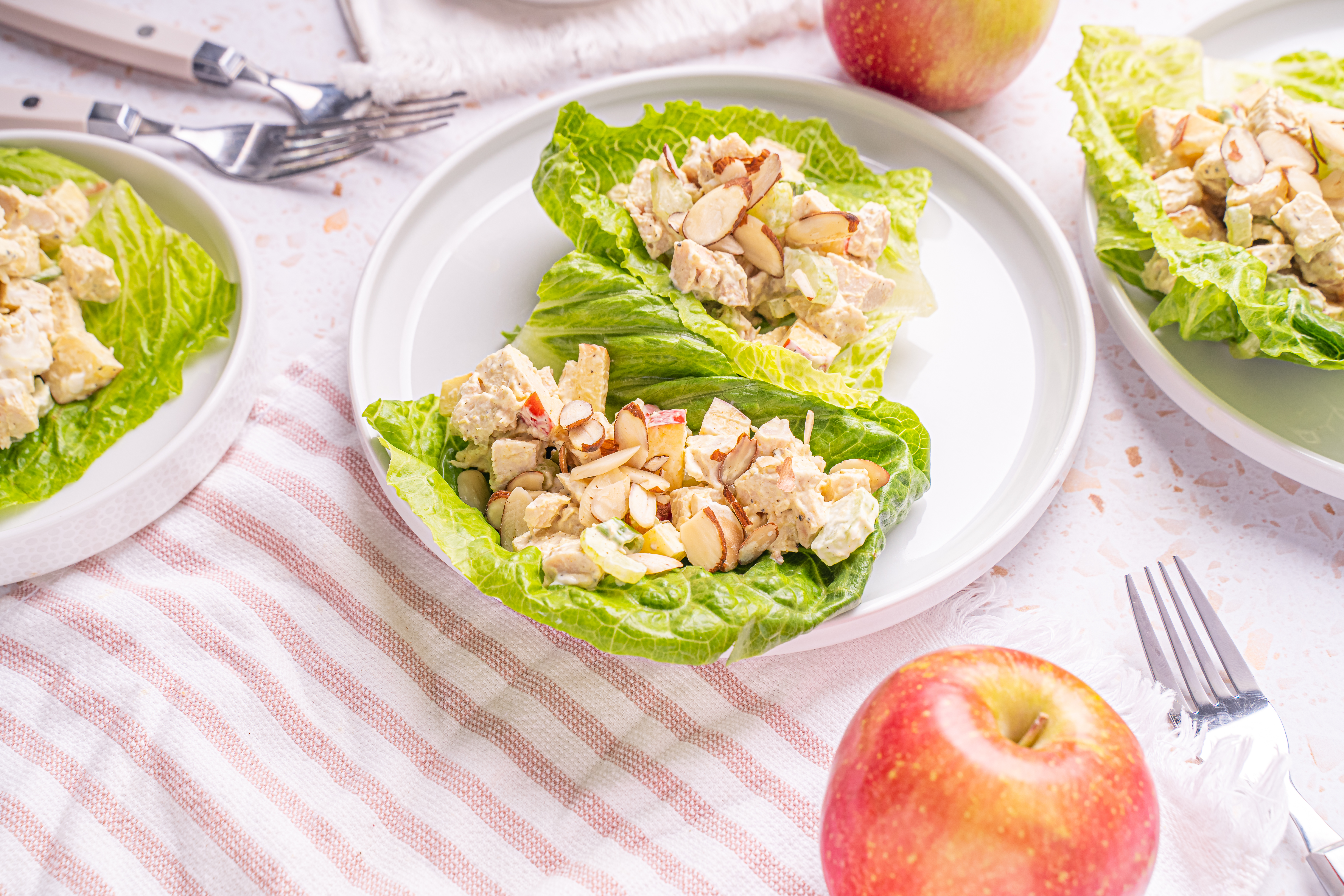 The pounds should melt off just as easily as this Skinny Chicken Salad melts in your mouth! Creamy, savory, just a little spicy, and with plenty of crunch! The sauce is tangy and rich, the veggies fresh, with the almonds audibly delicious, and the apples sweet and crisp! Oh yes, there's so much to love about Skinny Chicken Salad, but the best part is how you can enjoy it guilt-free with some key substitutions that make it lower in fat! Mmmmm, sounds (and tastes) like a great time!