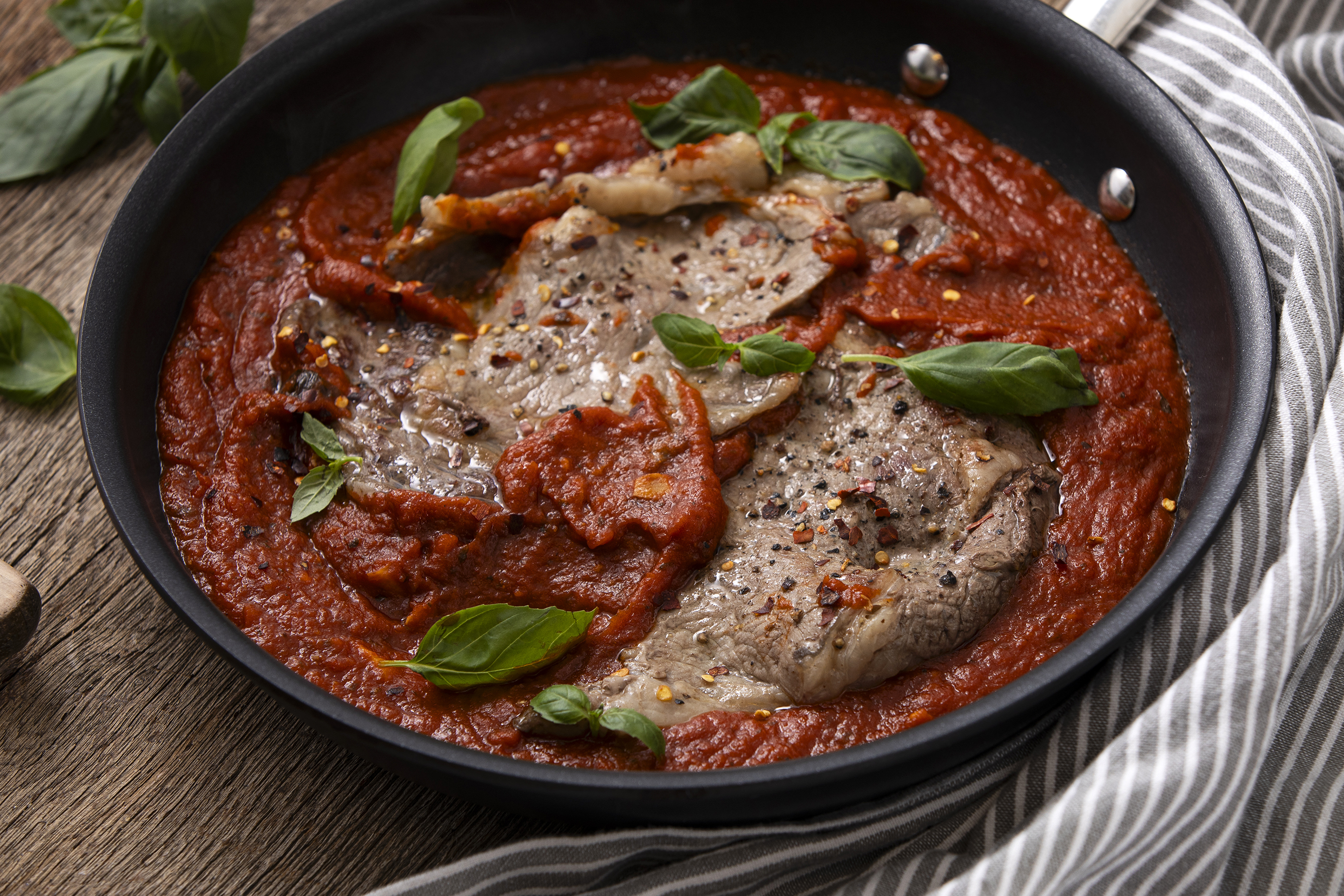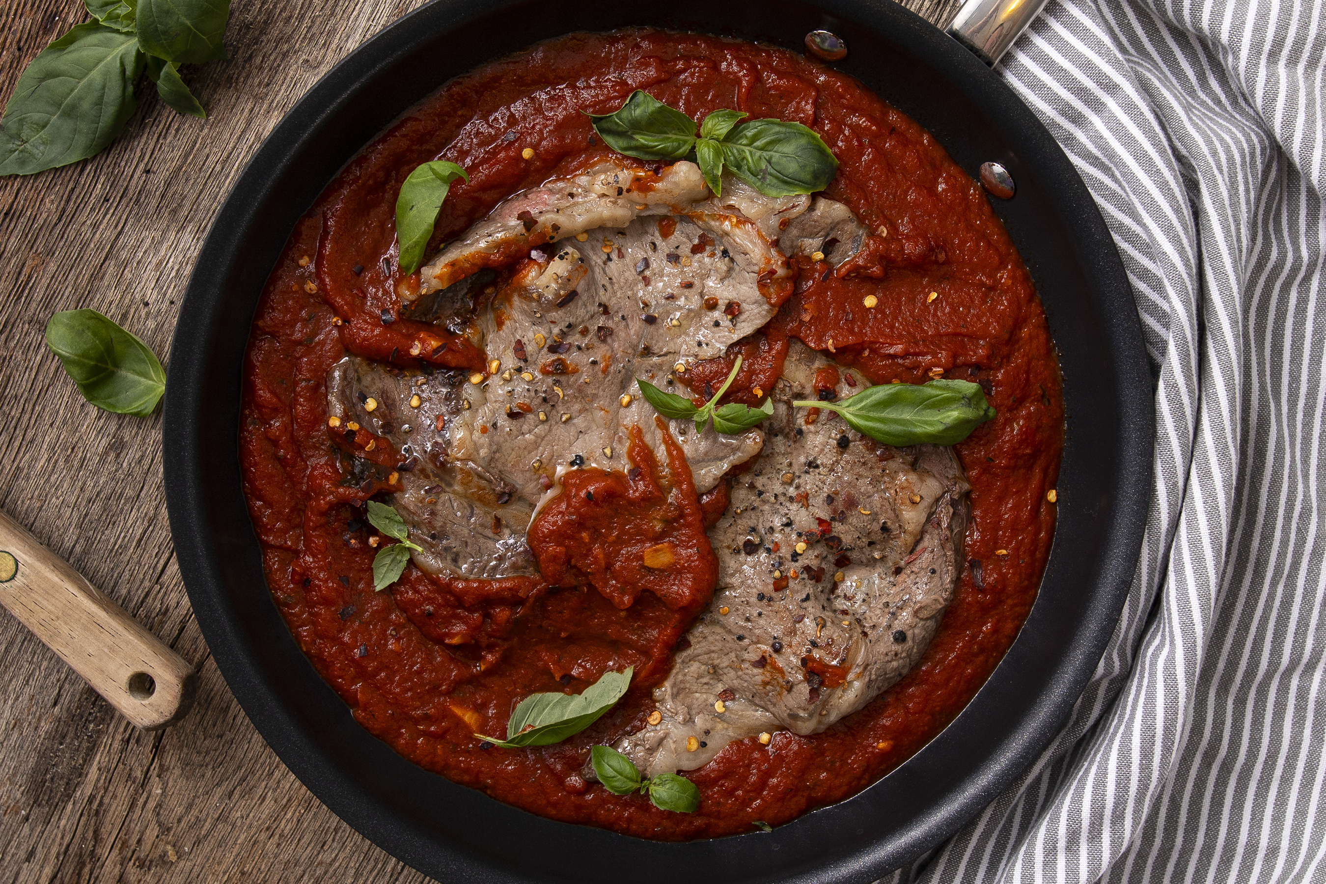 Steak Pizzaiola is a distinctly Italian, delicious way to do steaks! The steaks are braised in a rich tomato sauce so that tangy, sweet, brilliant flavor infuses each bite, with a hint of red wine for a little earthiness. Mmm, Steak Pizzaiola is elegant and relatively simple to make! This might become a new favorite in a hurry!