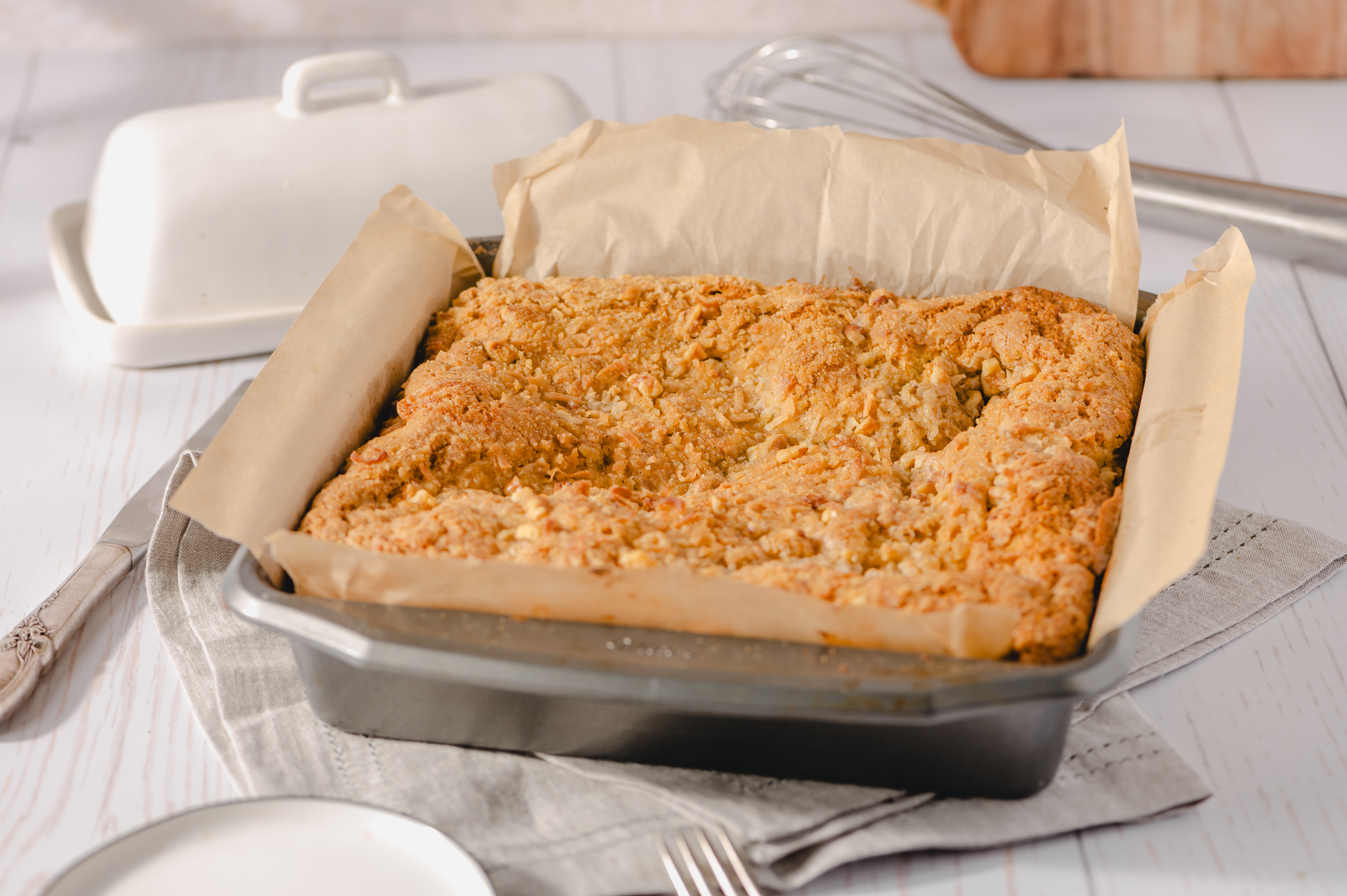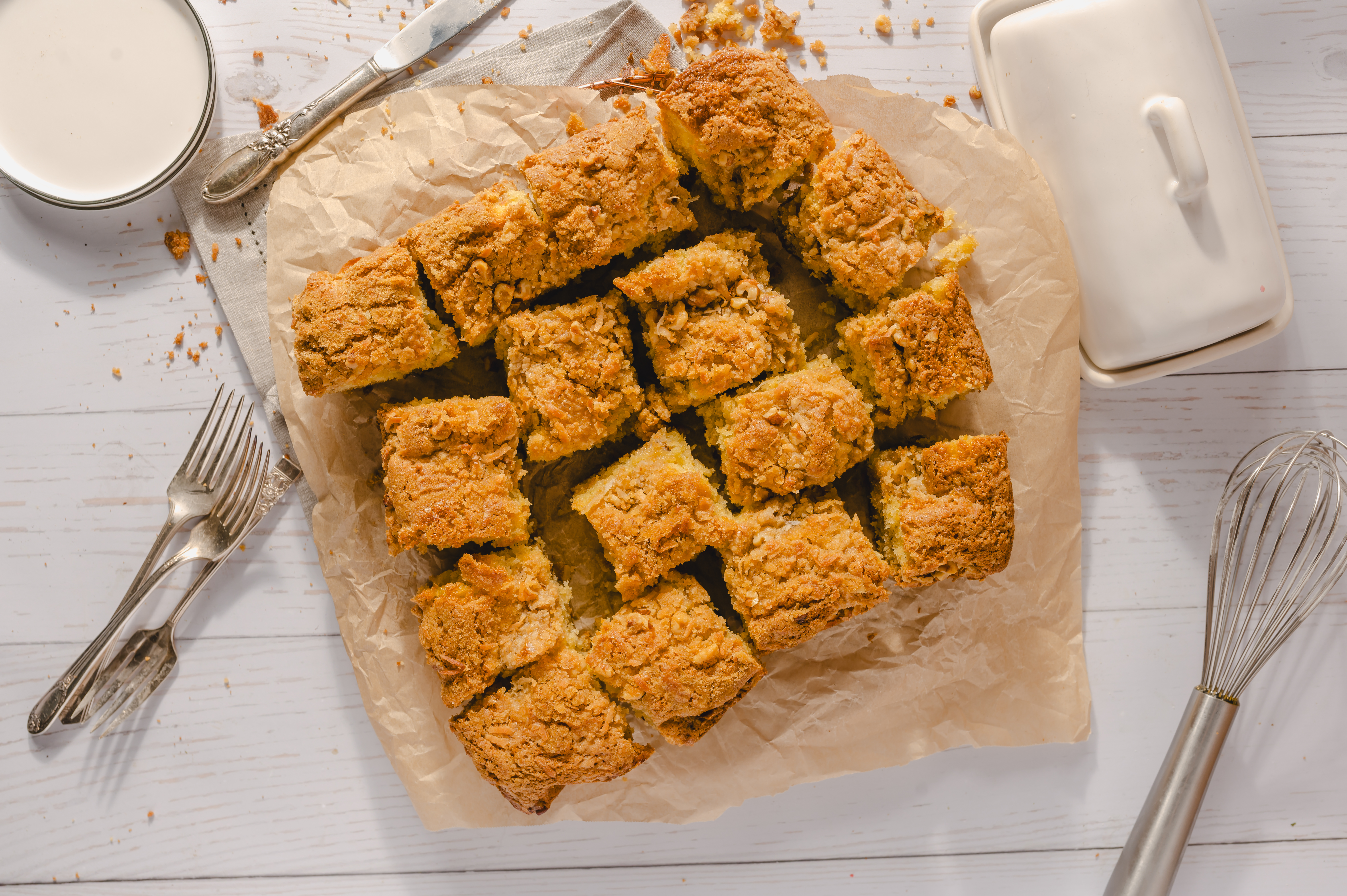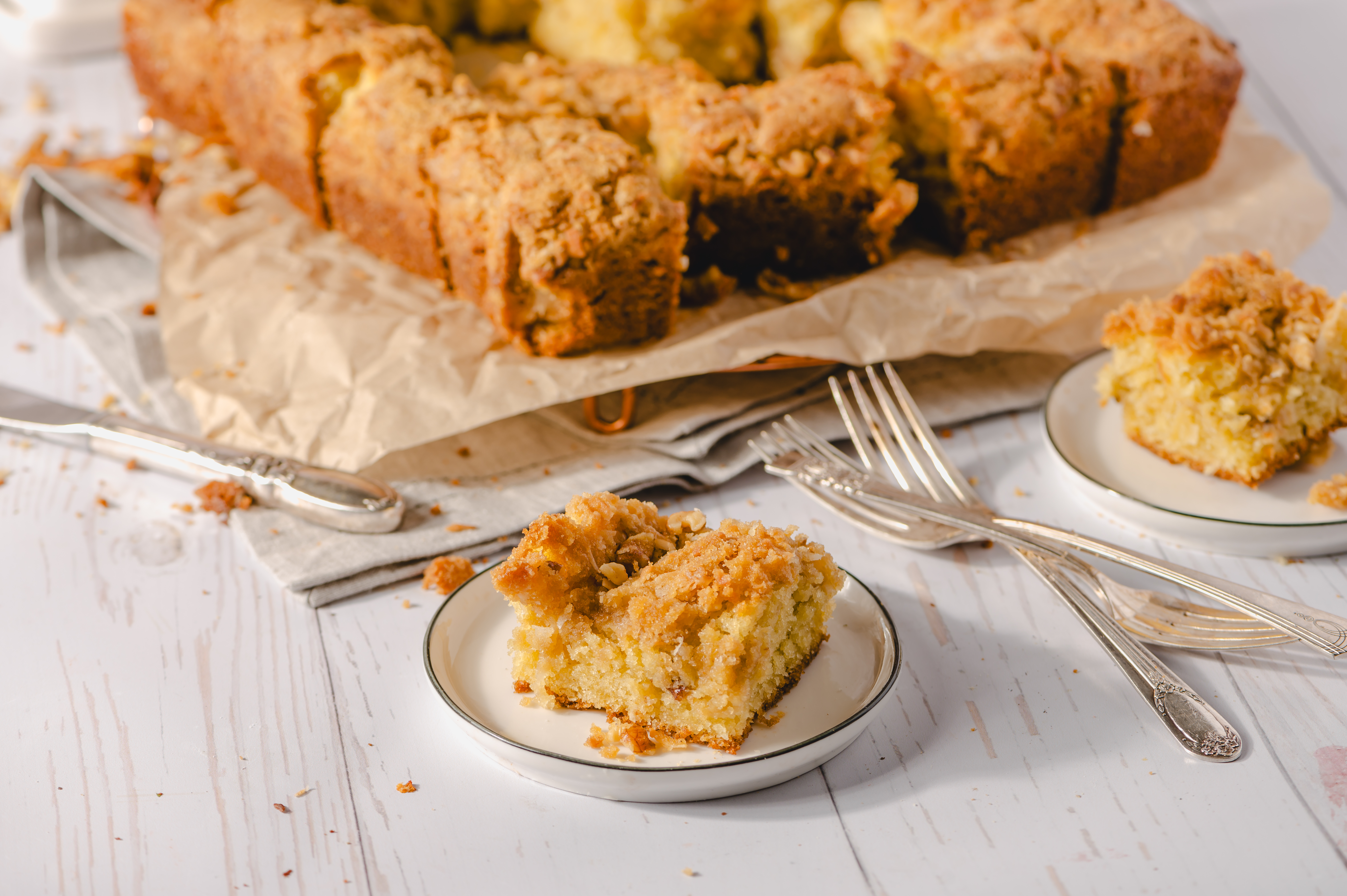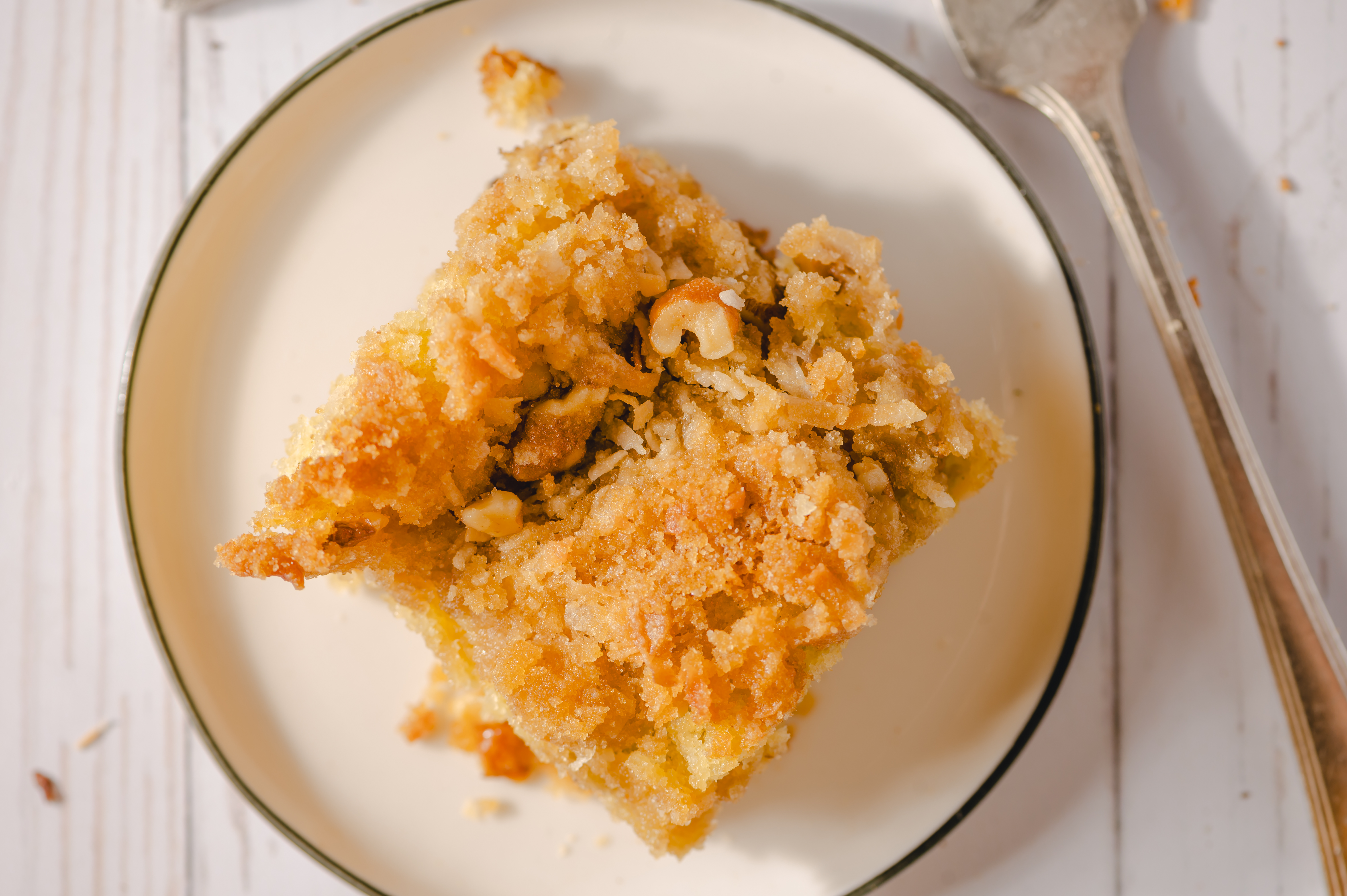 Teatime has never felt so welcoming and exciting! Sunday-Best Coffee Cake is the classic cake for brunch, afternoon teatime, or just enjoyed as a sweet breakfast! The cake is tender and golden, with layers of crunchy, nutty, coconut-filled streusel in the center and on top to ensure you never miss all the crunchy sweetness! Sunday-Best Coffee Cake is the best that Sunday has to offer and more!