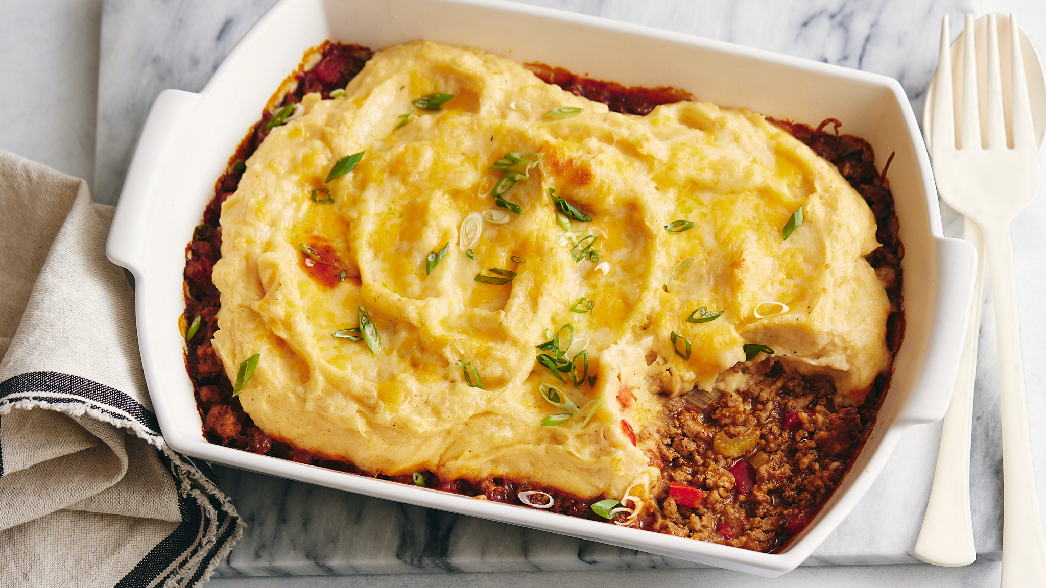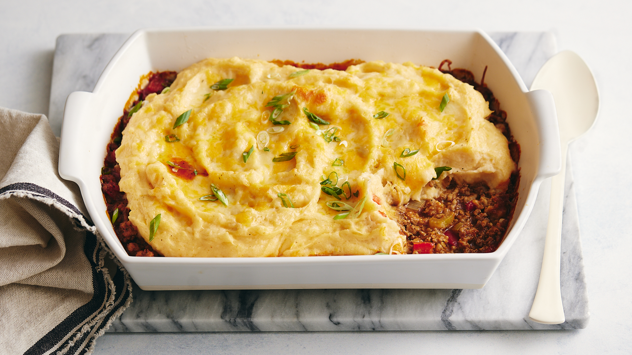 Surprise Shepherd's Pie Bake does have its fair share of surprises — featuring turkey instead of beef being the least among them. No, the real surprise behind Surprise Shepherd's Pie Bake is that everything, from the creamy mashed potatoes on top to the succulent filling beneath, is infused with a homemade, Creole-inspired seasoning blend. It's zesty and exciting, with just the right amount of heat to wake your taste buds up! It'll be no secret how much you love this dish!