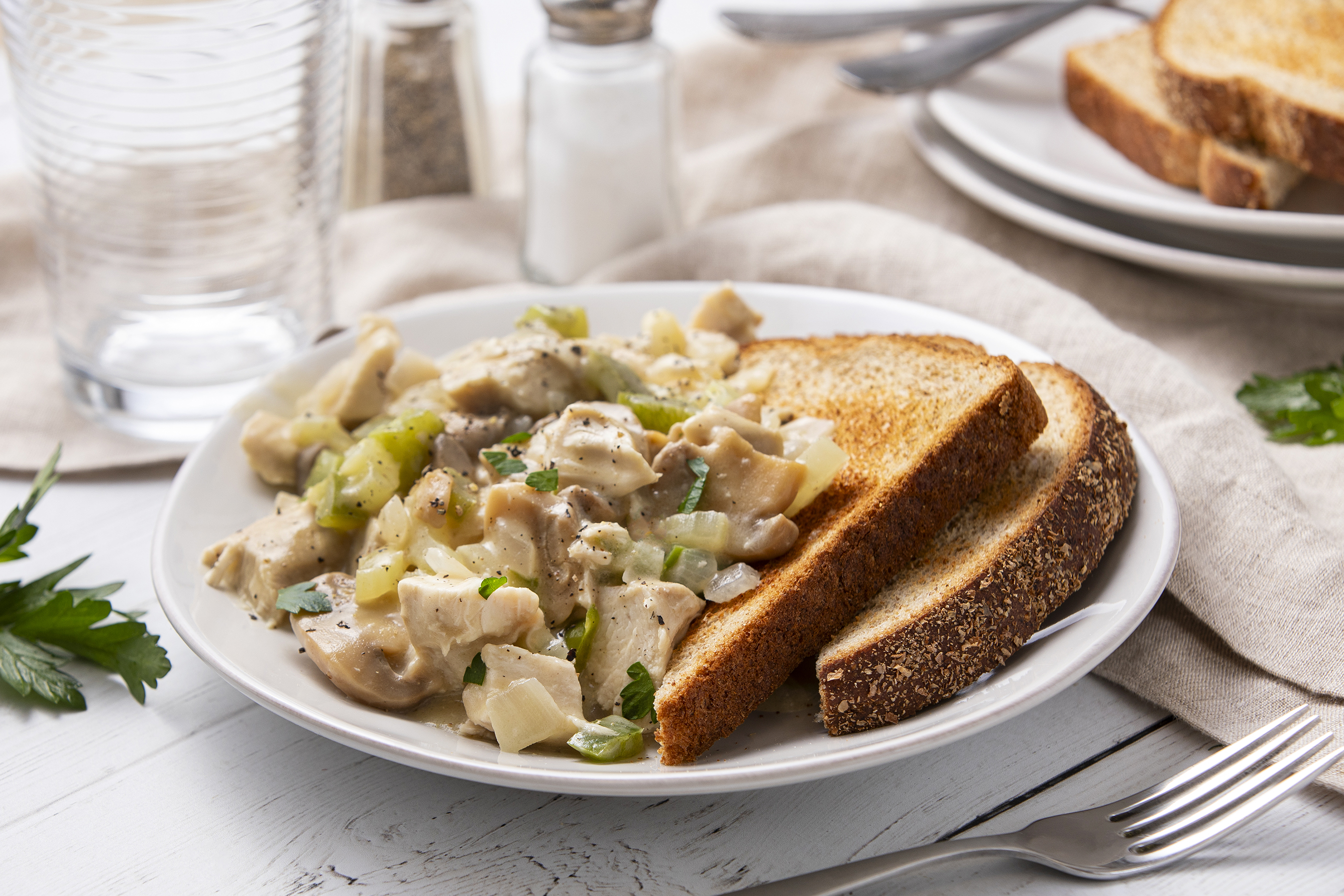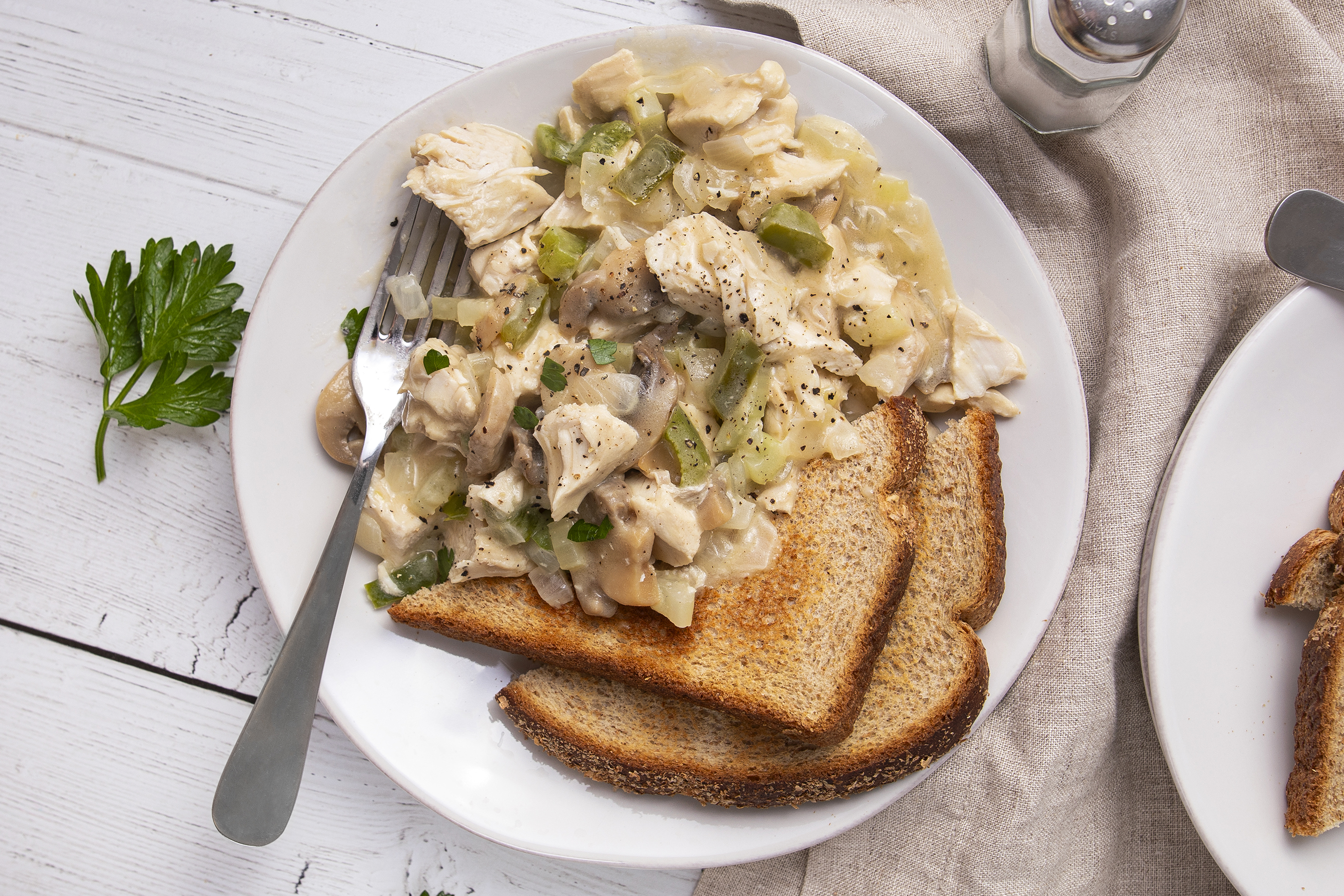 You deserve a rest. Don't worry, Take-Care Turkey à la King has you covered. It's ready in less than half an hour and it's just the most nourishing, nurturing, and hearty dish you could ask for on a cold and stressful evening. As a bonus, it's ready to use up plenty of your leftover holiday turkey, so you don't even need to worry about getting the protein ready. Instead, you can sink into the warm, buttery creamy flavors of the sauce, the beefy mushrooms, and all the poultry goodness spread out on some toast. Take-Care Turkey à la King treats you like a king (or queen), as you so richly deserve!