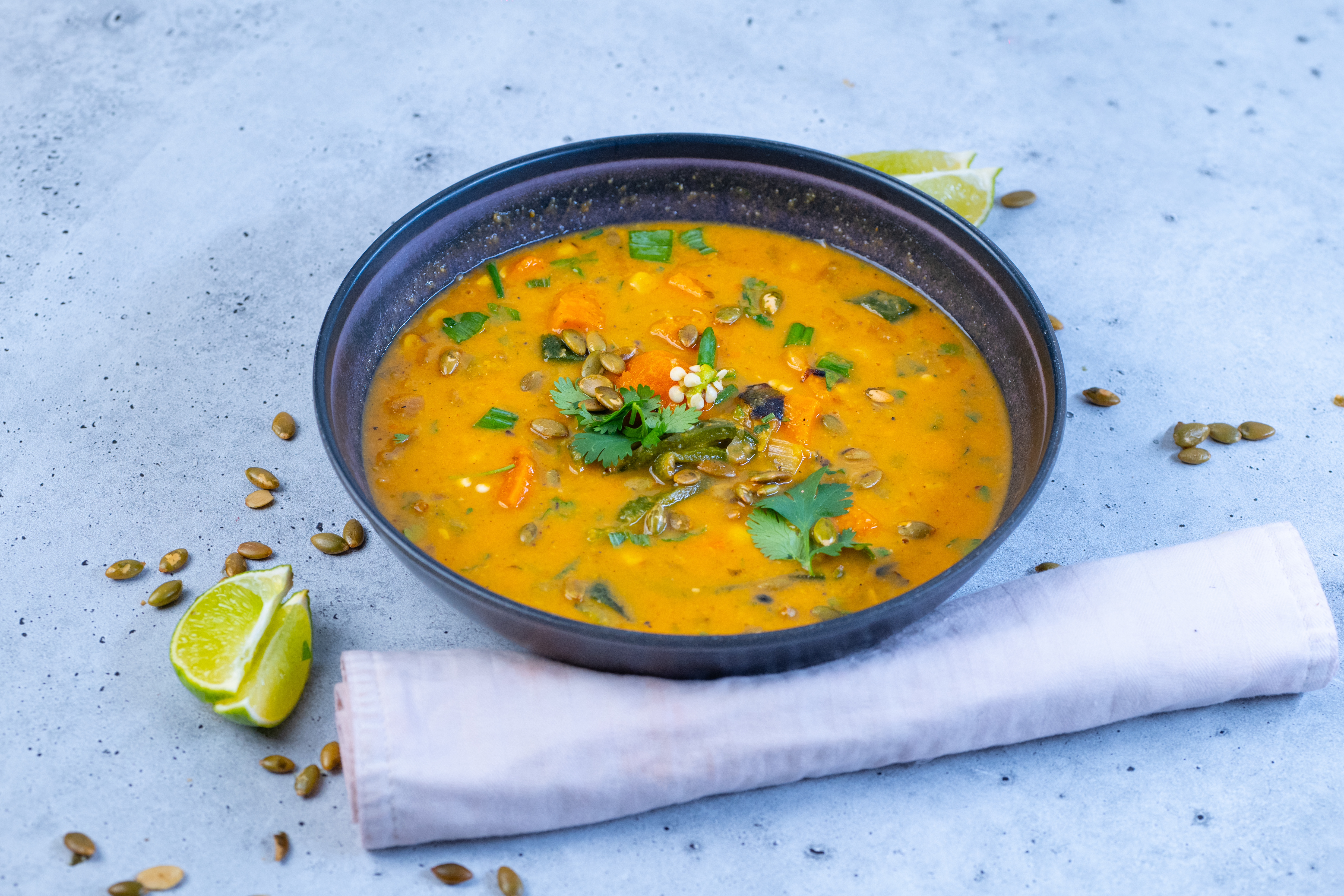 Step 17 -Serve the chowder garnished with the extra cilantro, the pepitas, and the green onions.