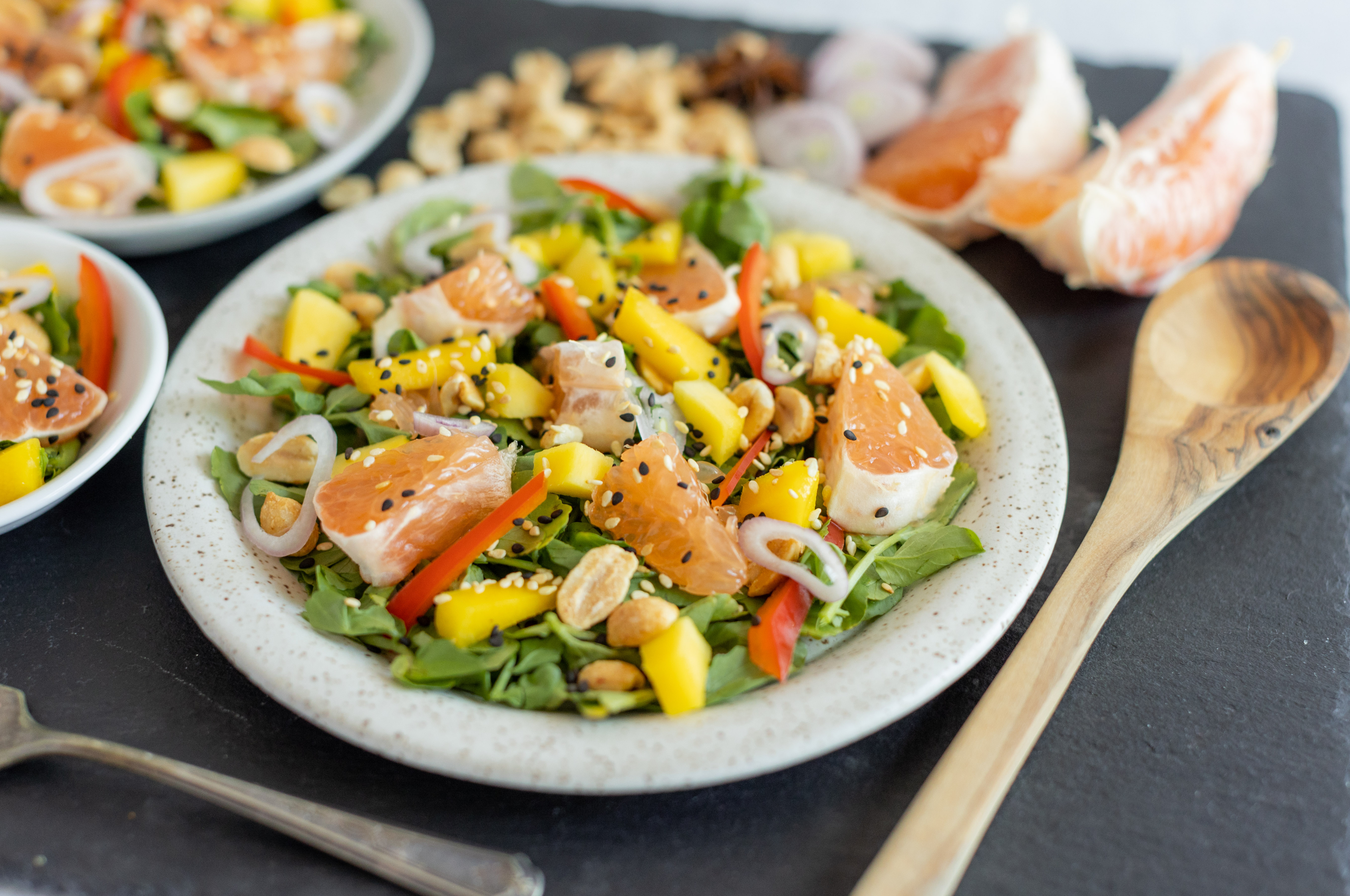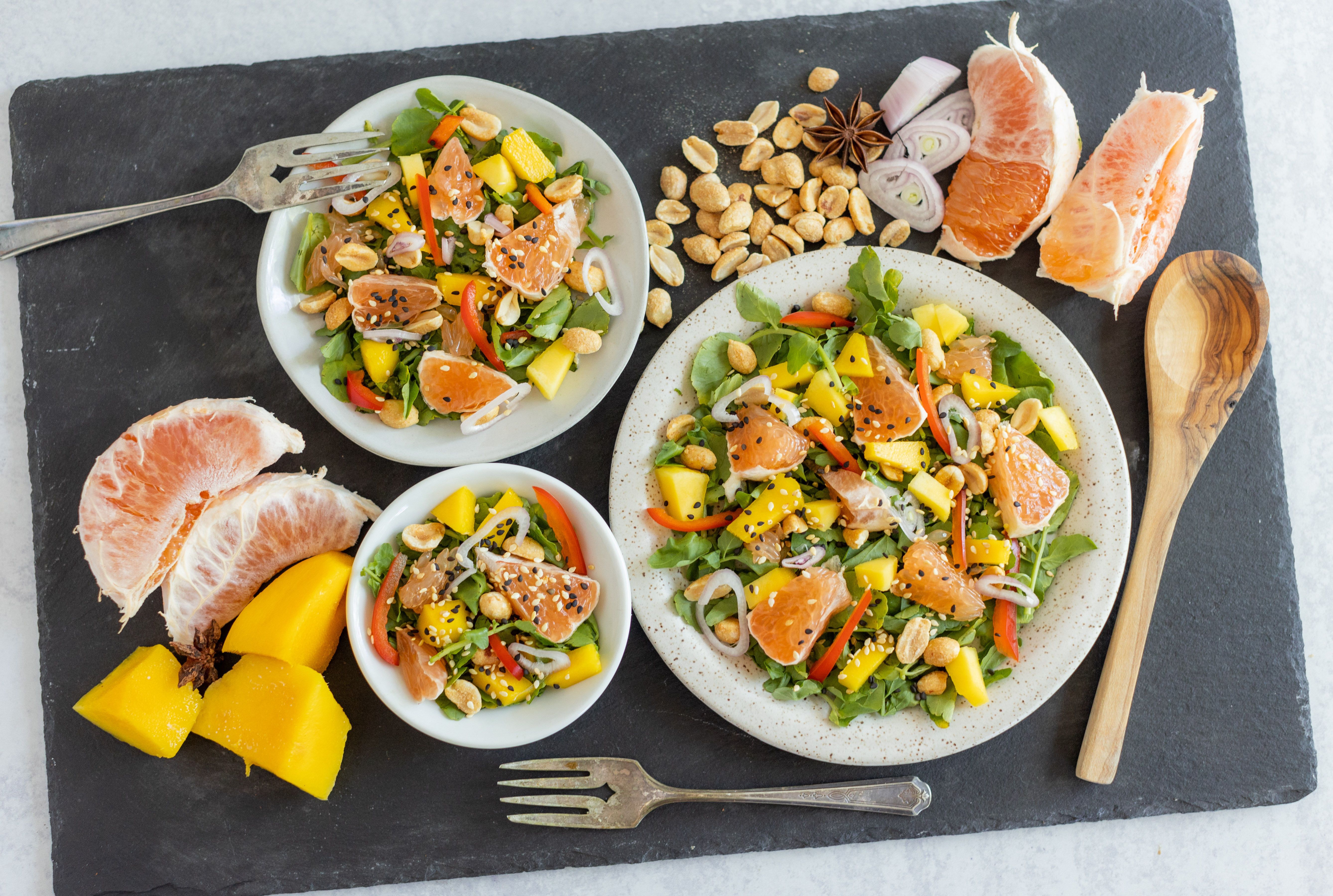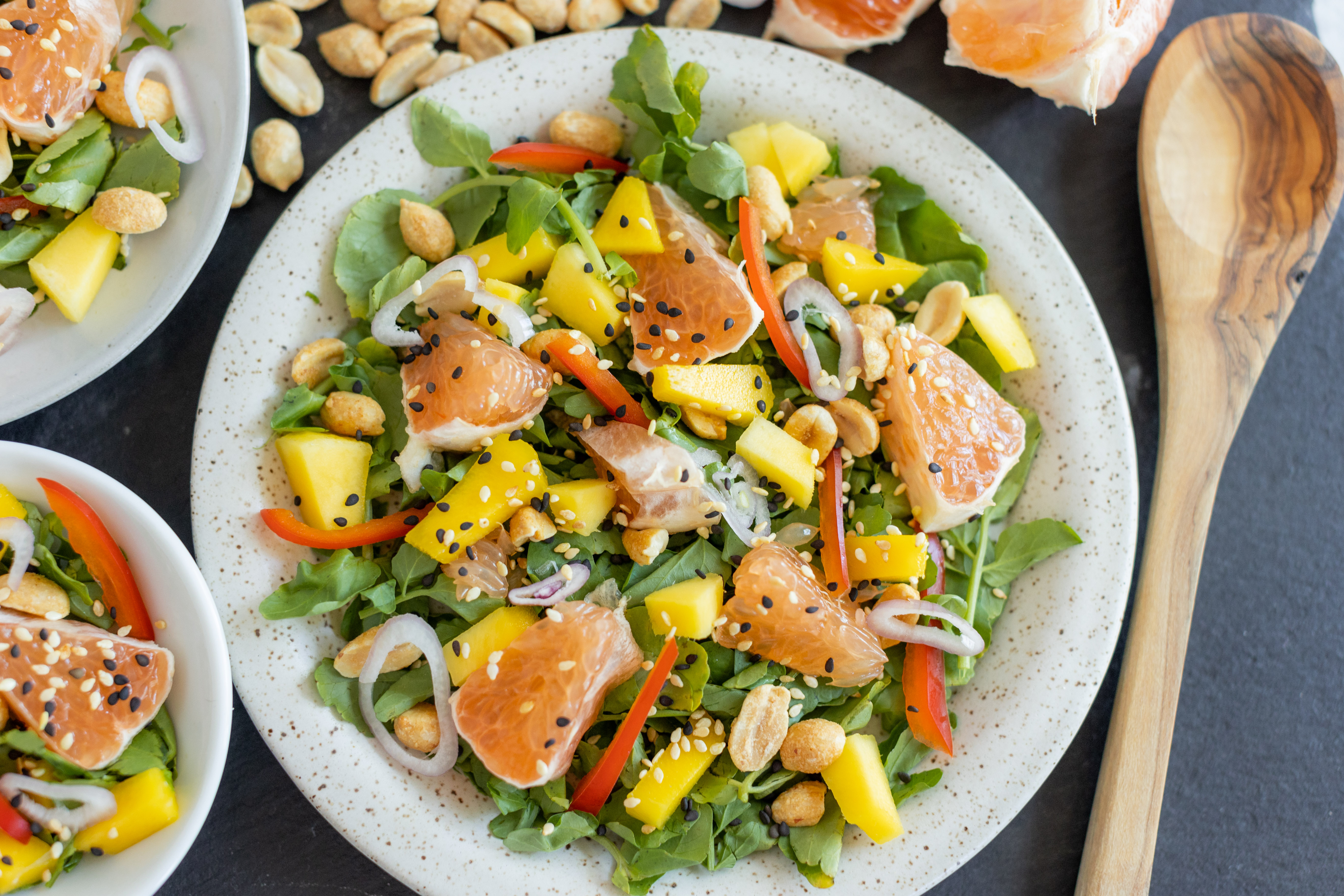 "Flavorful" and "salad" are usually not two words that you see together, but we have a wonderful change of pace for you. This Thai Fruit Salad packs a punch, loaded with marinaded grapefruit, leafy watercress, and magnificent mango. It's tossed with an amazing Thai-flavor-infused dressing that's filled with so much tantalizing flavor. Doesn't that just make your mouth water thinking about it? Thai Fruit Salad is a gorgeous and delicious addition to your summer salad menu.