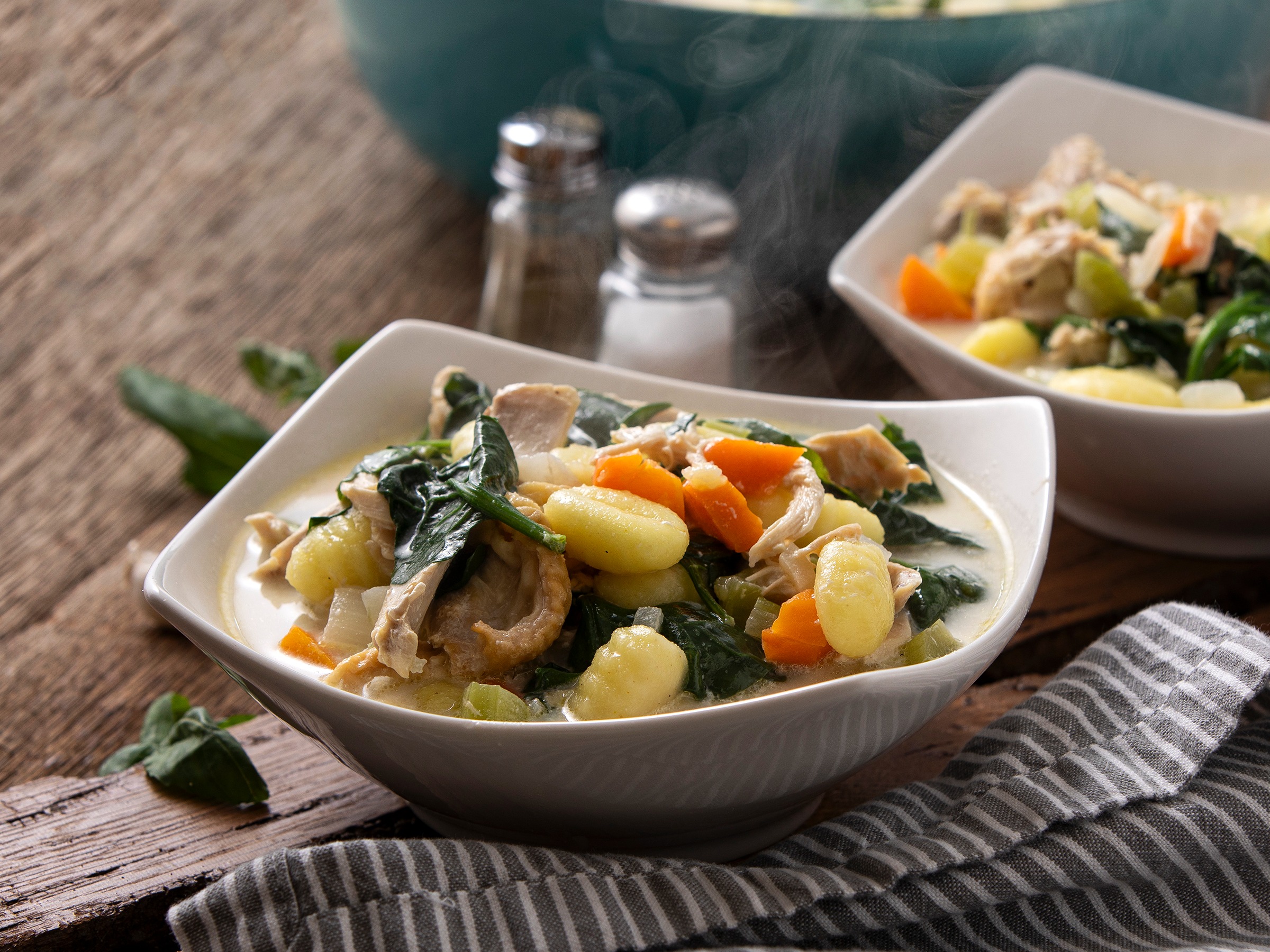 Step 4 -Add the gnocchi and the half-and-half to the soup mixture and stir to combine. Cook over medium, stirring occasionally, until the gnocchi are heated through, about 6 minutes.