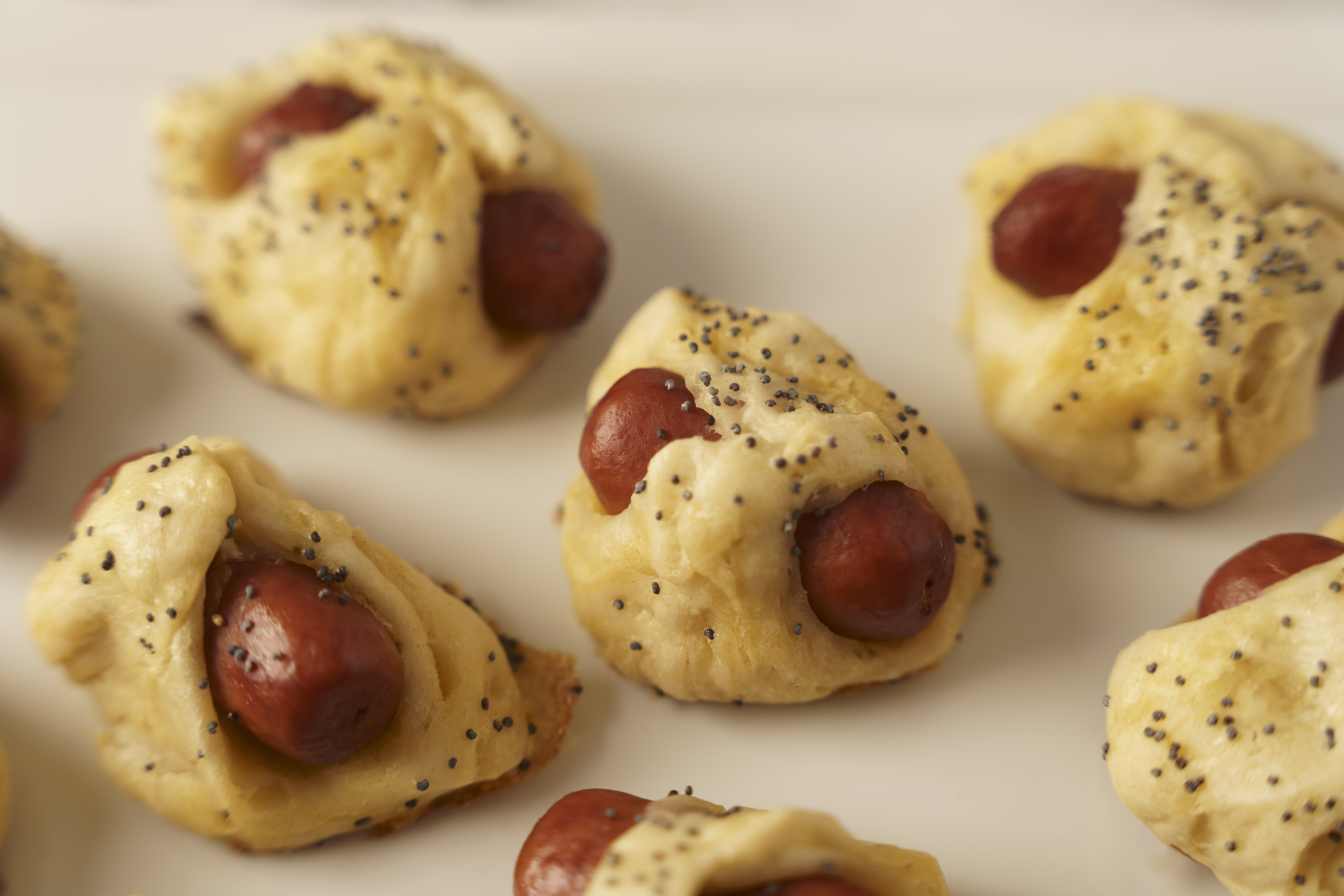 Step 10 -Sprinkle the sausage-biscuits with the poppy seeds.