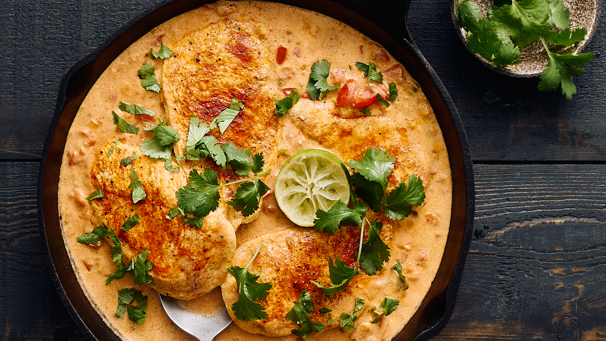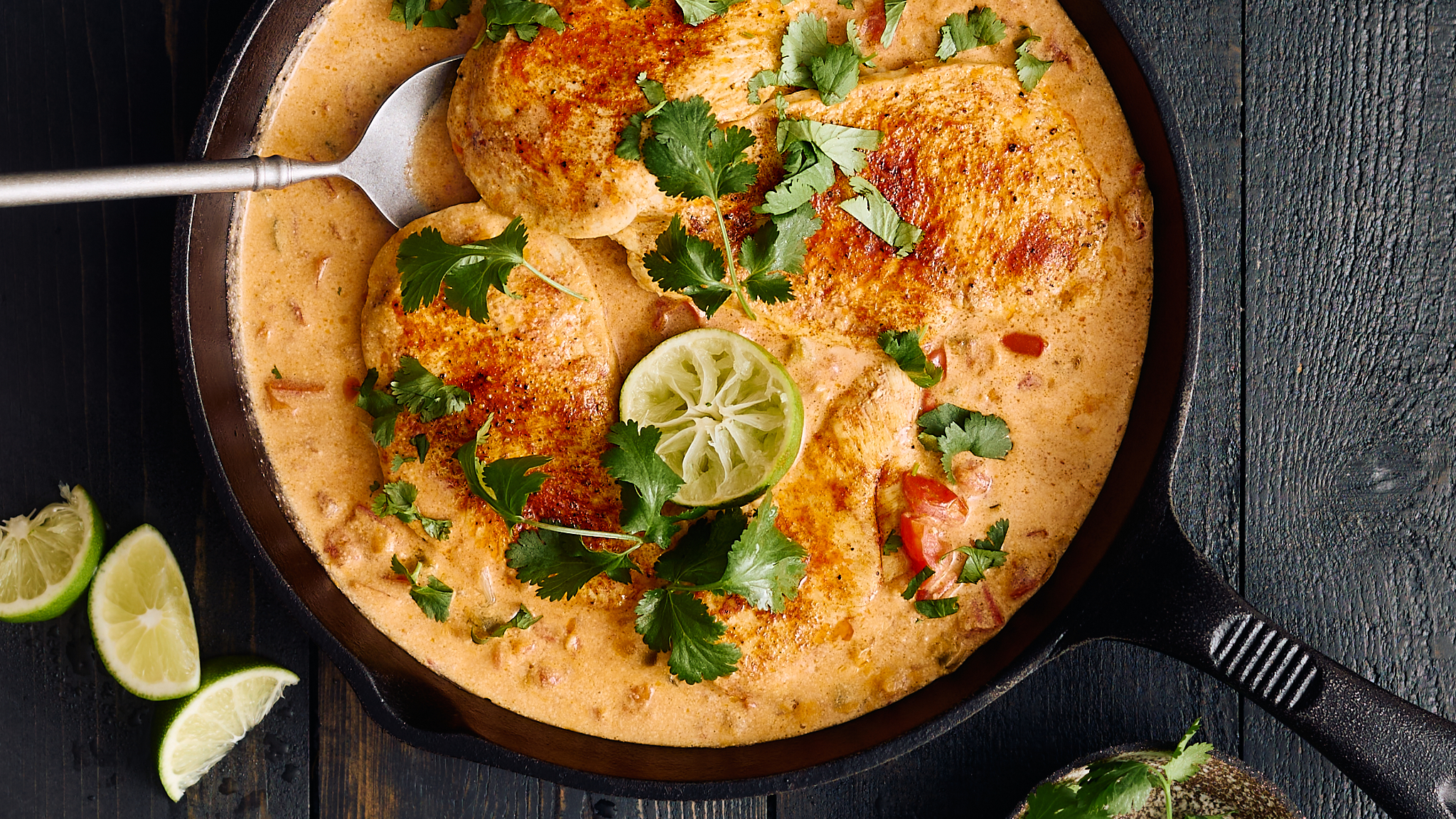 It's a chicken that dreams of warm sandy beaches and turquoise waters... and with a bite, you will be, too! Tropical Dreaming Chicken is golden, savory, juicy chicken braised in a lightly spicy and creamy coconut and tomato sauce for the full island life experience! A hint of sweet, tangy lime and fragrant cilantro elevates Tropical Dreaming Chicken even further, so this will be the dinner you're dreaming of for a long time to come!