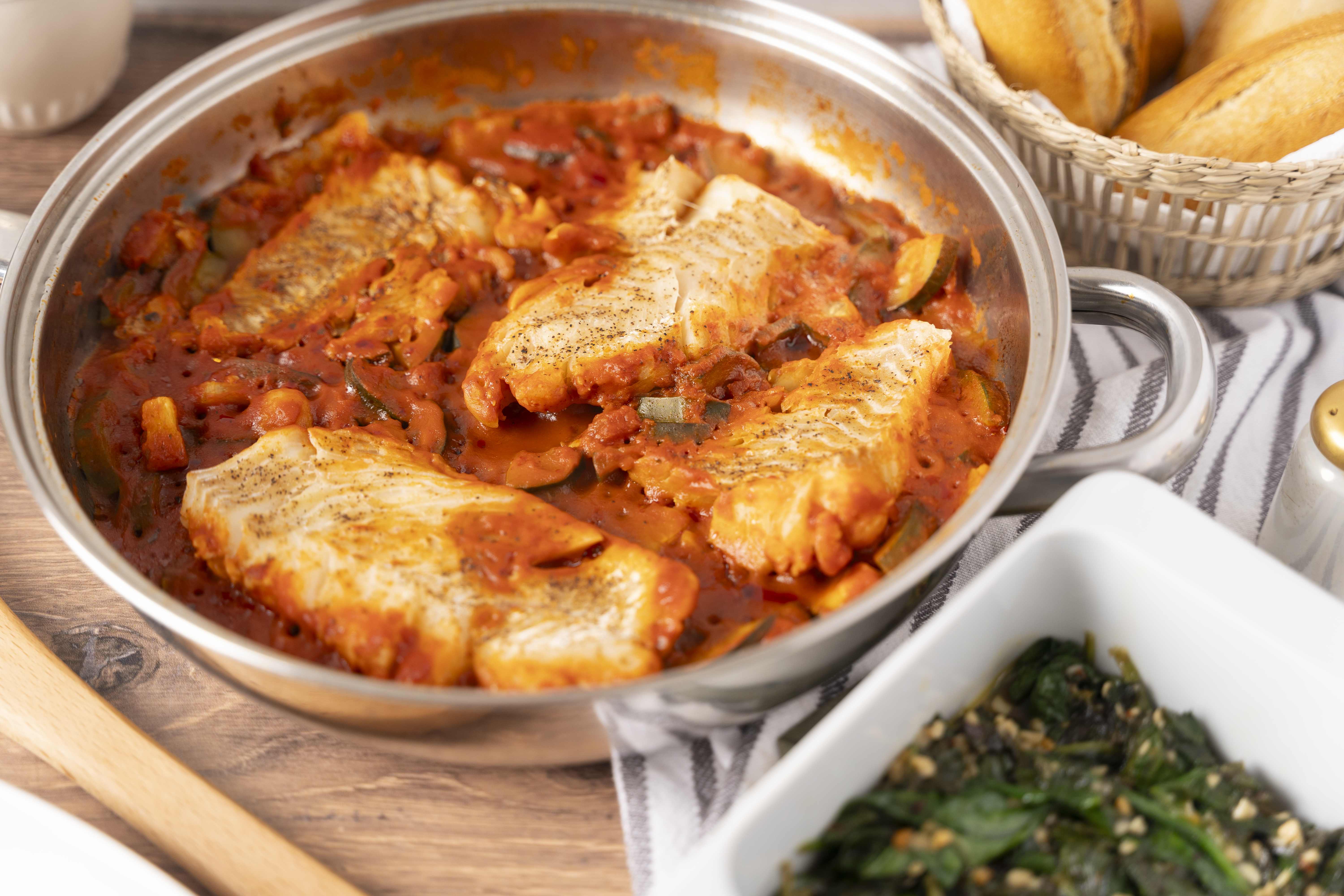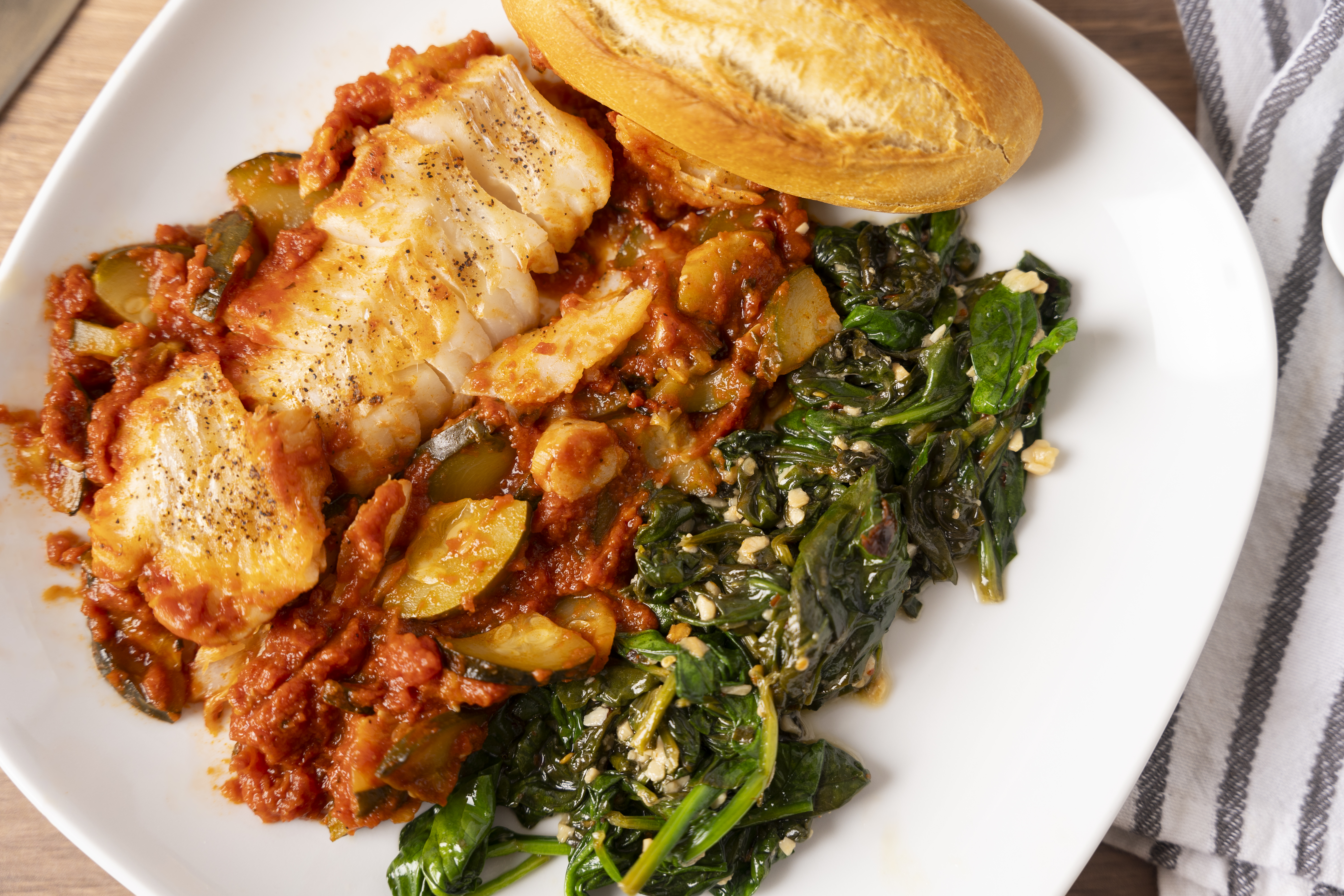 This Ultimate Mediterranean Cod draws from different Mediterranean cuisines and styles, but it all adds up to something so, so flavorful! The delicate and sweet cod fillets are braised in a hearty and rich tomato sauce, and then are served with a Florentine-style bed of zesty spinach. Tender, juicy, and perfectly balanced between sweet and savory, Ultimate Mediterranean Cod really does deliver up the best of what the turquoise sea offers.