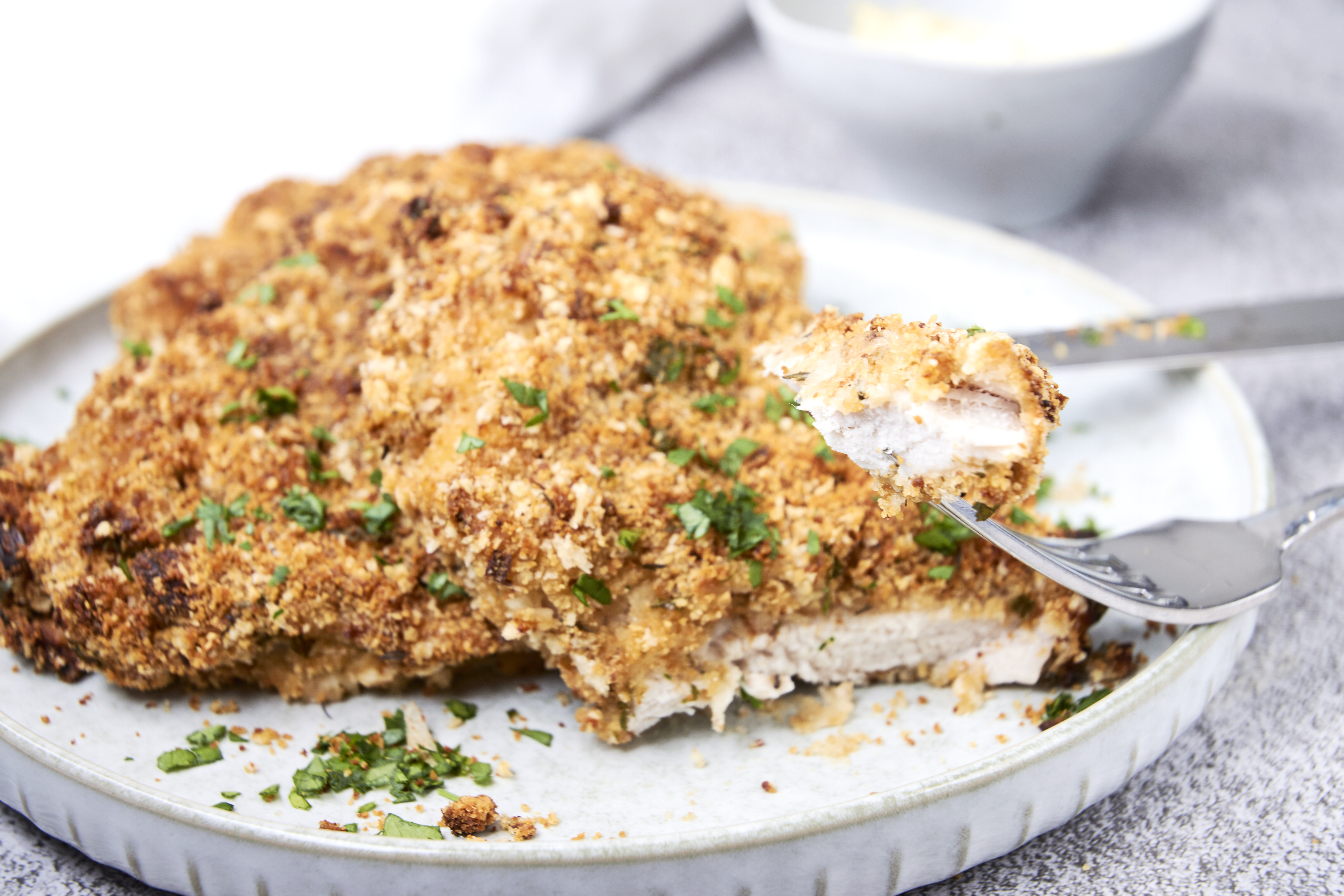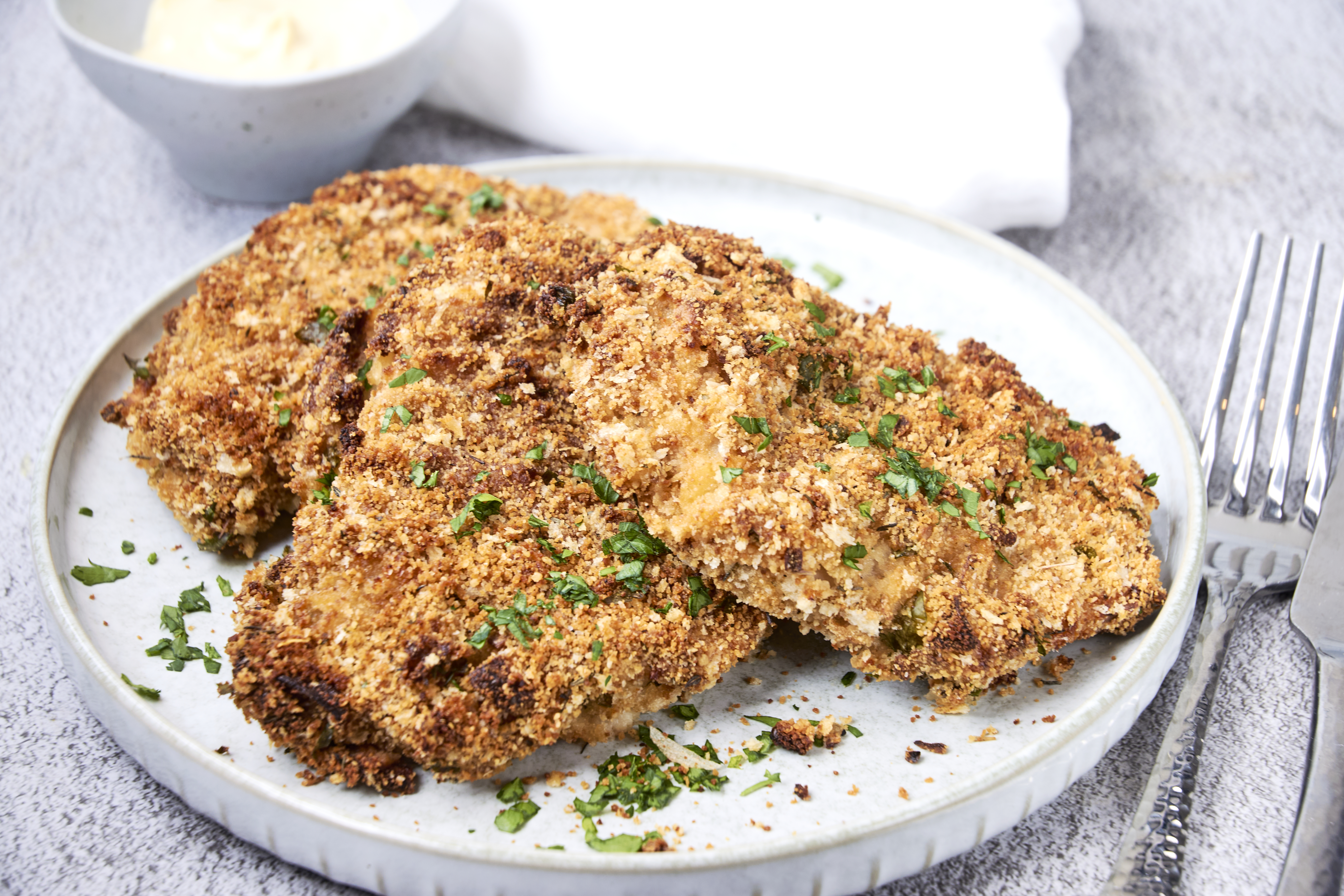 Step 21 -Gently press the coated chops in the breadcrumb mixture on all sides, ensuring a thick layer of the breadcrumbs adheres.