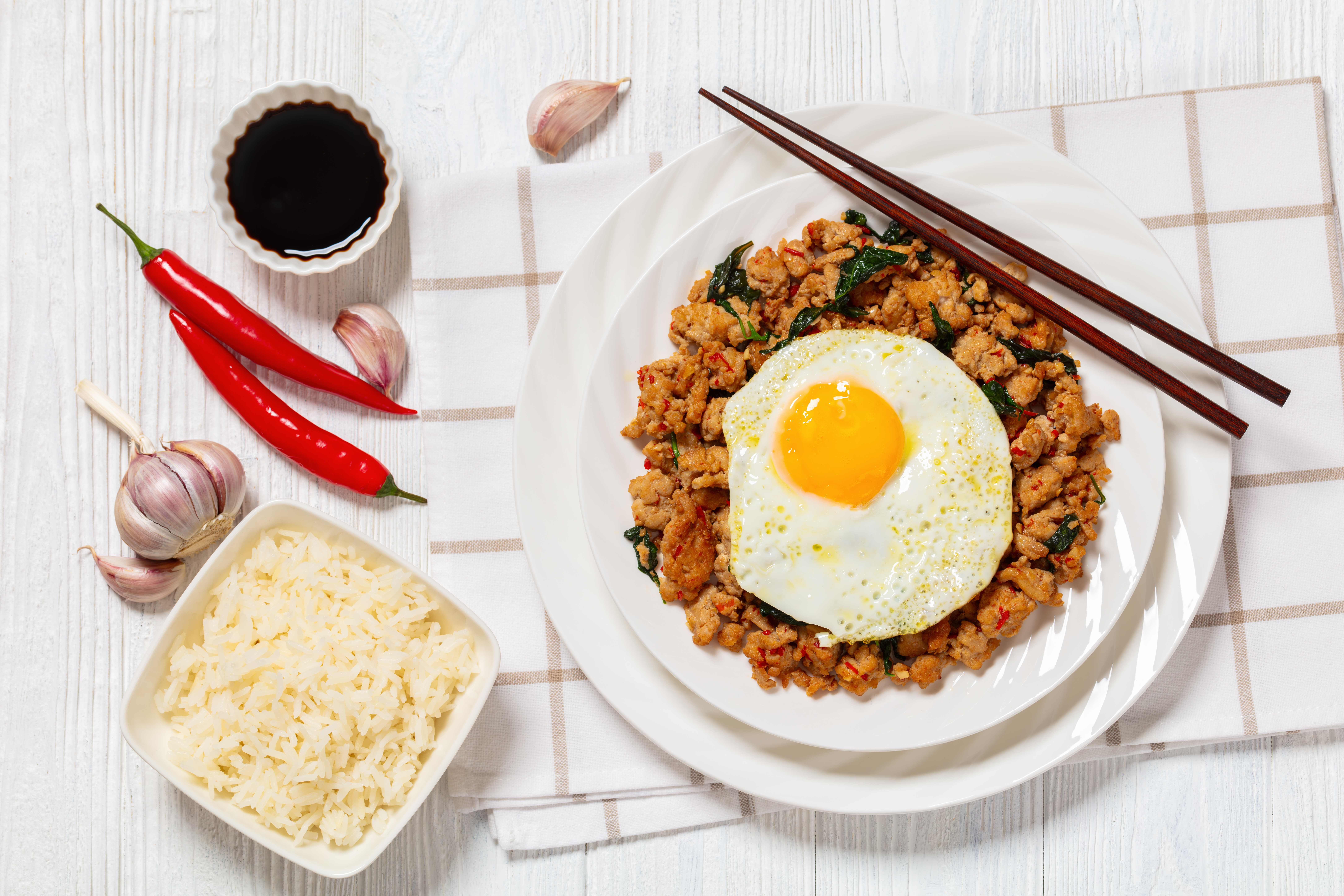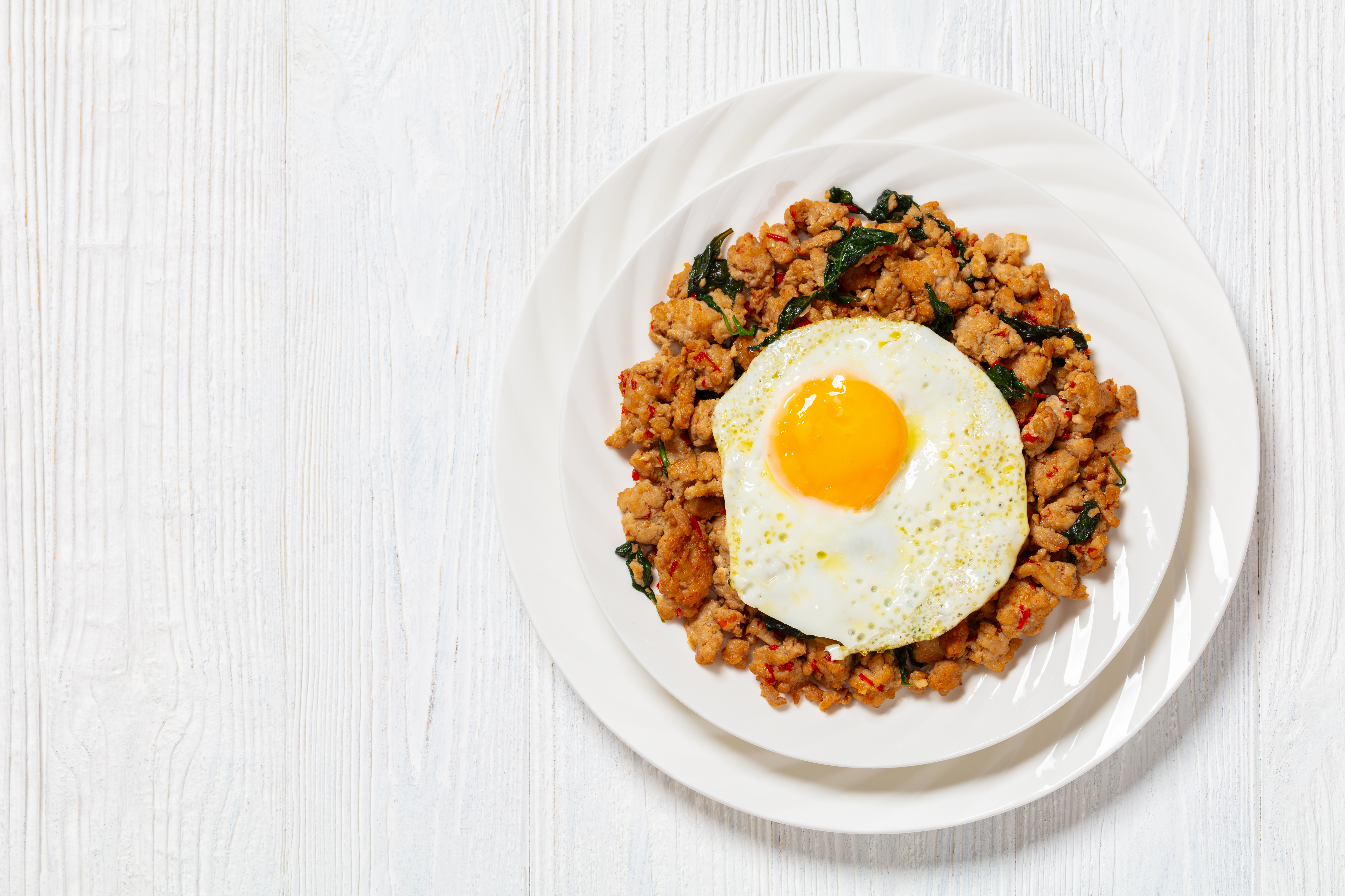 This is a very different take on your average chicken dinner, but trust us... your taste buds will thank you for making this! Ultimate Thai Chicken is almost like a ground chicken stir-fry, but drawing from the sweet, umami flavors of Thailand, as well as that cuisine's love of spice. Seriously! If you are big into spicy foods, Ultimate Thai Chicken will get you there and then some! Topped with a fried egg, this dish is the ultimate in spicy chicken fun!