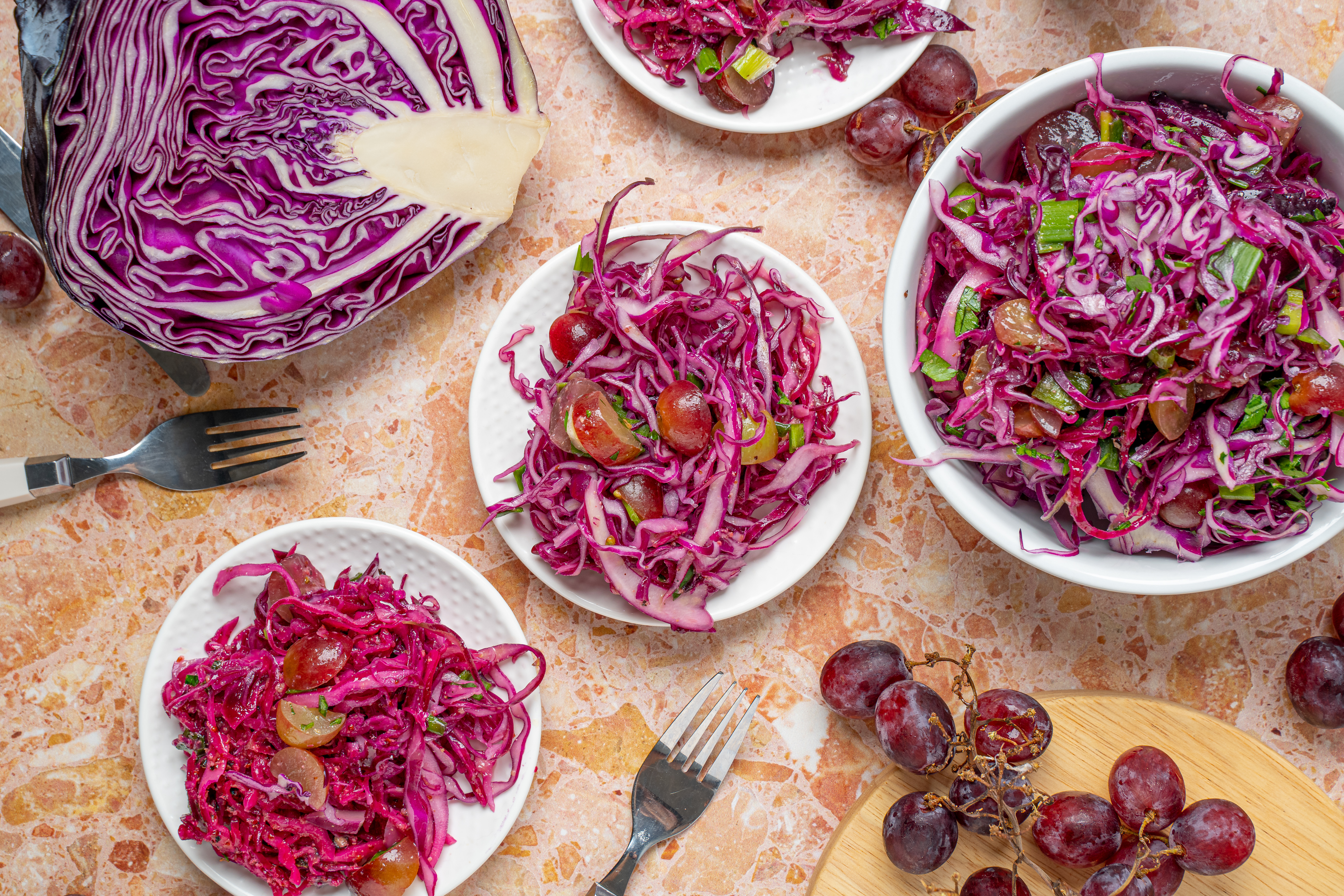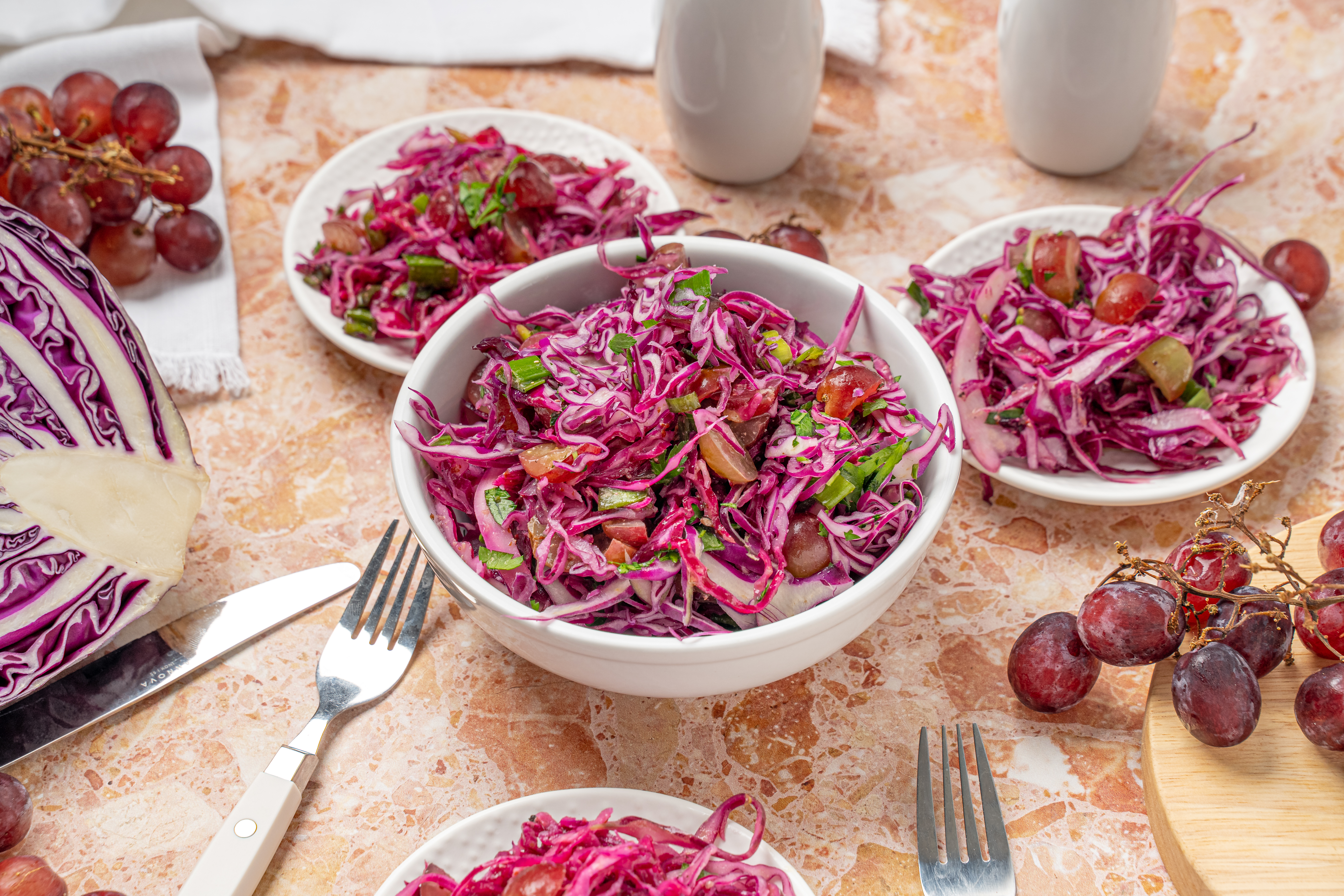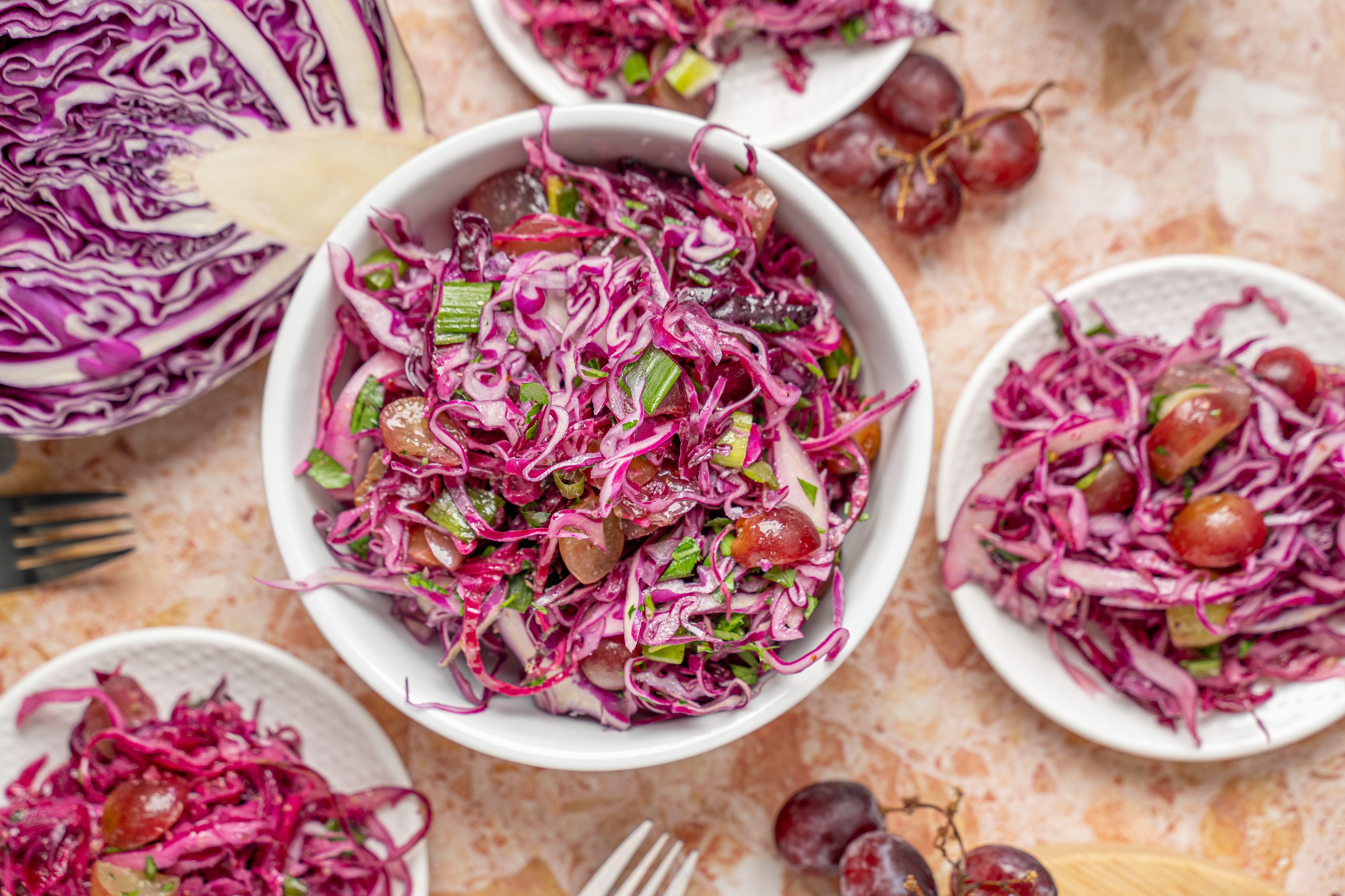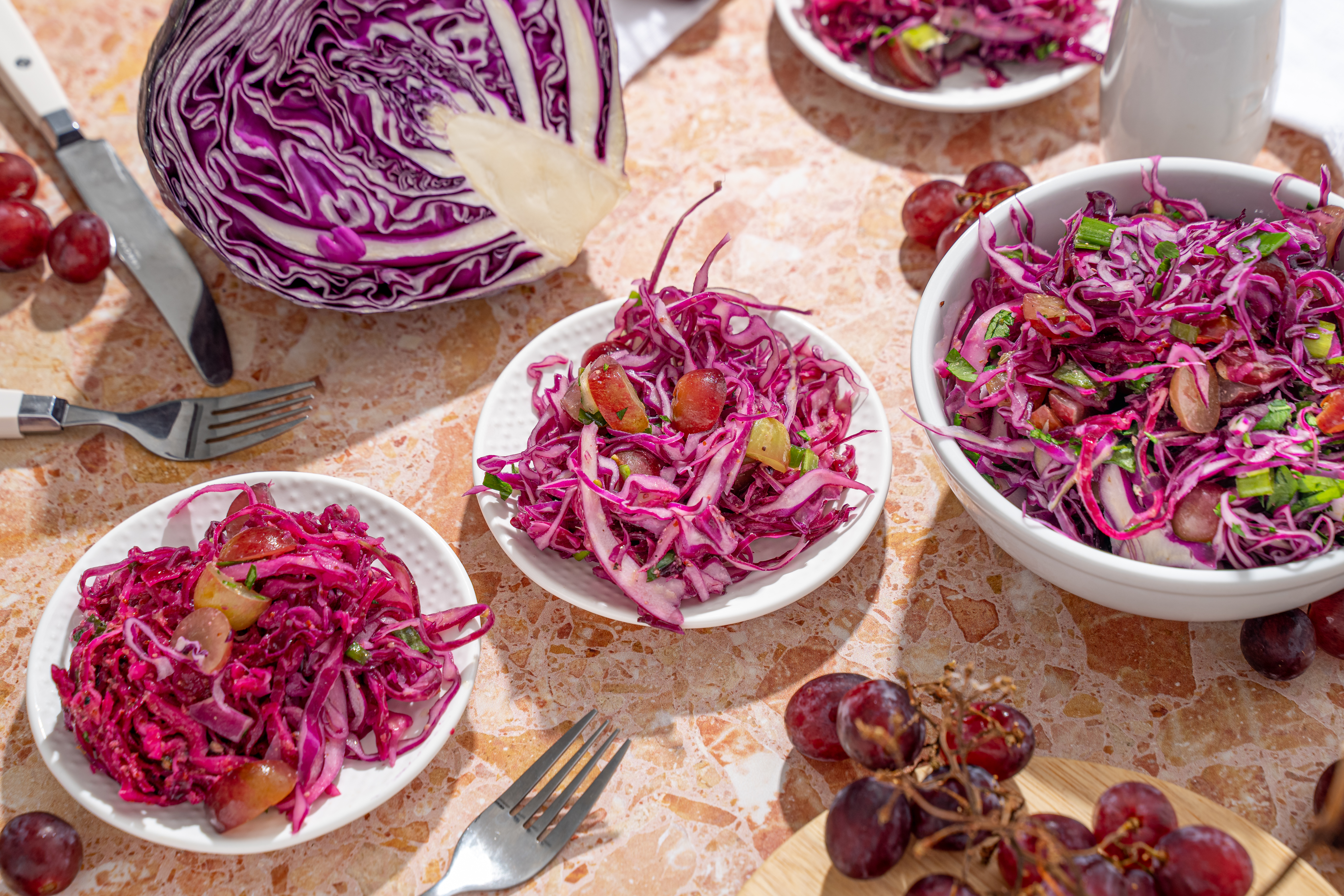 When you need an updated side to take to the next gathering, it is sometimes hard to find something new and exciting. Unexpected Coleslaw will be the perfect fit for your picnic! Checkered tablecloth aside, the crisp red cabbage grabs the red carpet's attention in this crunchy, flavor-enhanced coleslaw. Packed with a tangy dressing, Unexpected Coleslaw is a bright and welcome addition to any meal. Put some life back into your meet and eats! You might just be surprised!