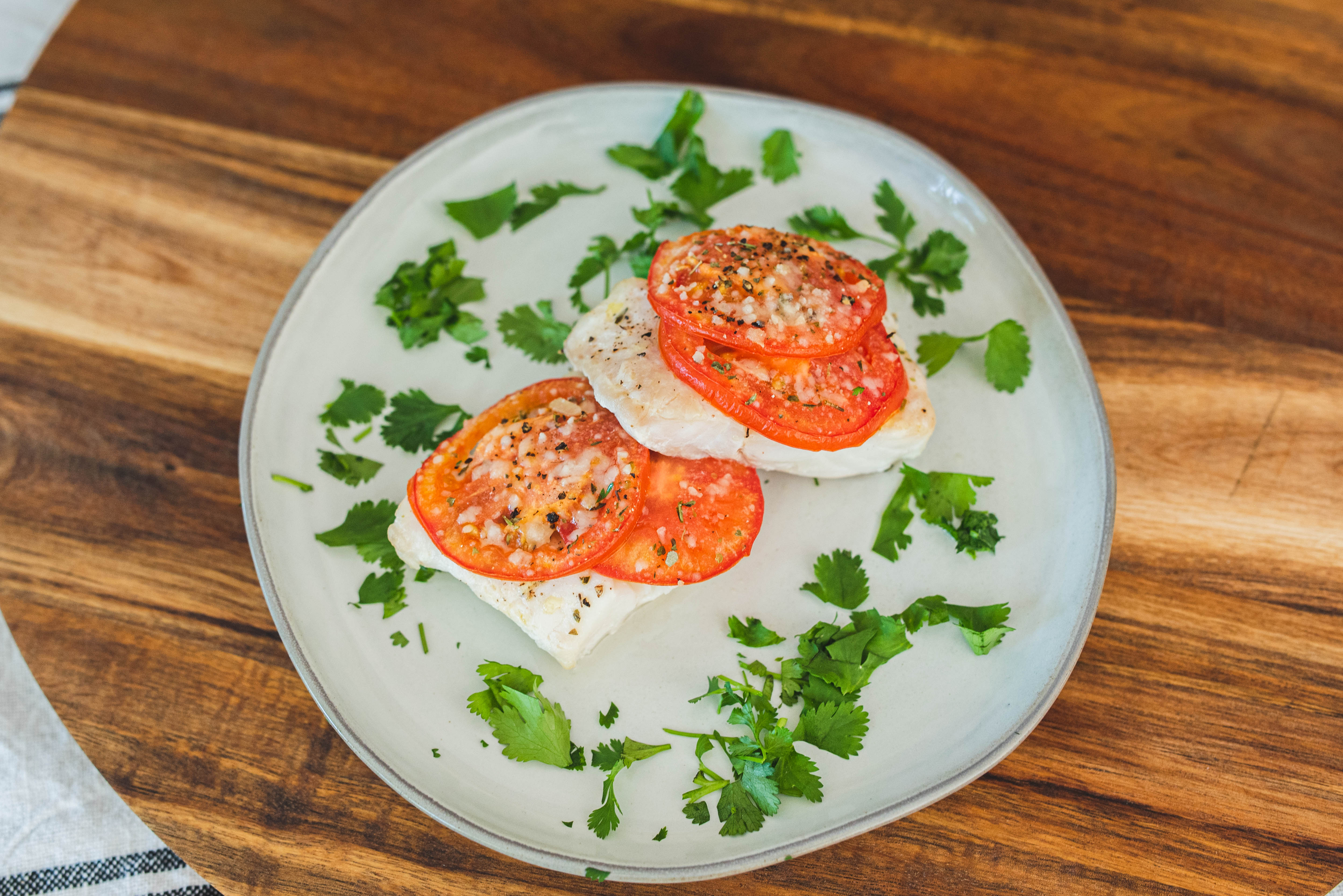 While everyone else is eating fried fish and feeling not-so-great afterwards, you're eating this Unfried Fish and feelin' just fine! In fact, you're feeling more than fine... you're feelin' fabulous! With this oven-baked fillet, swimming in hints of citrus and basil, on your plate topped with juicy tomatoes and rich parmesan, nothing can bring you down! Now how does that sound? Get those groggy and bloated symptoms out of here and get back to feelin' great with some Unfried Fish!