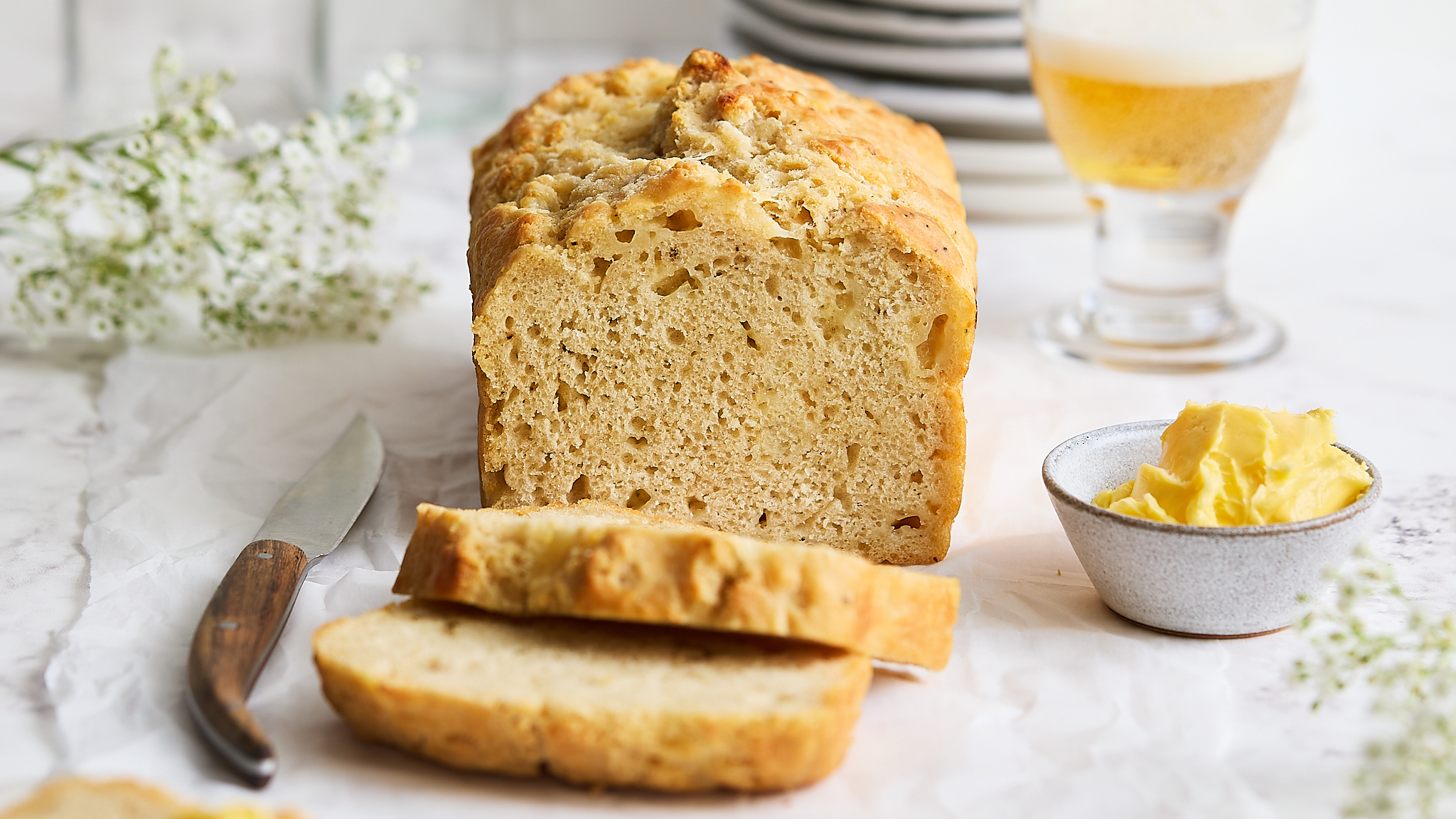 Watch-My-Beer Bread is just a funny name for the tastiest beer bread around! You get to watch as an average bottle of beer transforms into a tender, buttery loaf of bread just loaded with melty, creamy cheese! Watch-My-Beer Bread is so delicious it doesn't even need butter on it... although we won't stop you from adding it, or even a sweet jam to bring out even more of the amazing malty flavor!