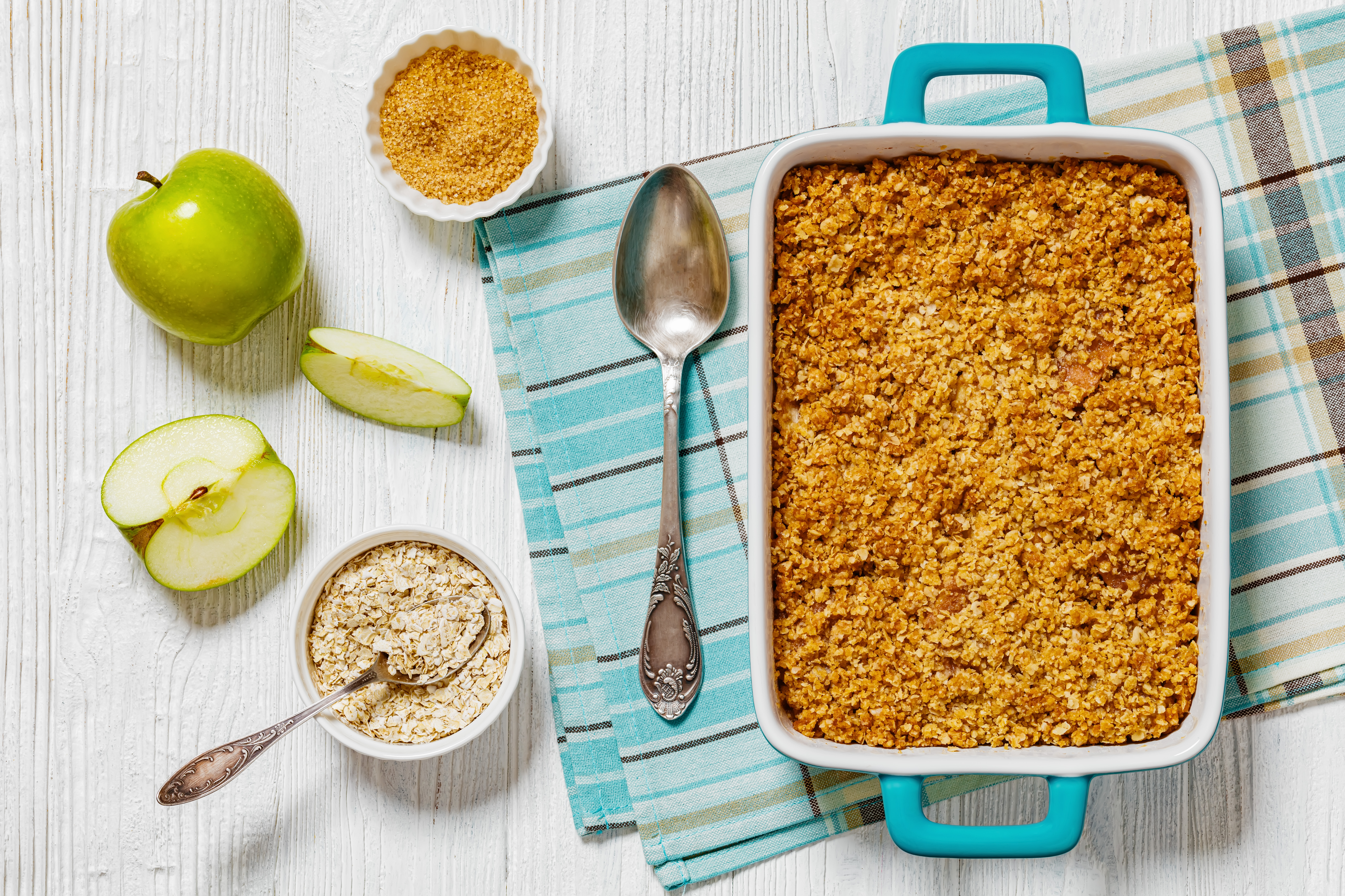 Step 9 -Bake the apple crisp until the top is golden-brown and the apples are bubbling around the edges, about 45 minutes.