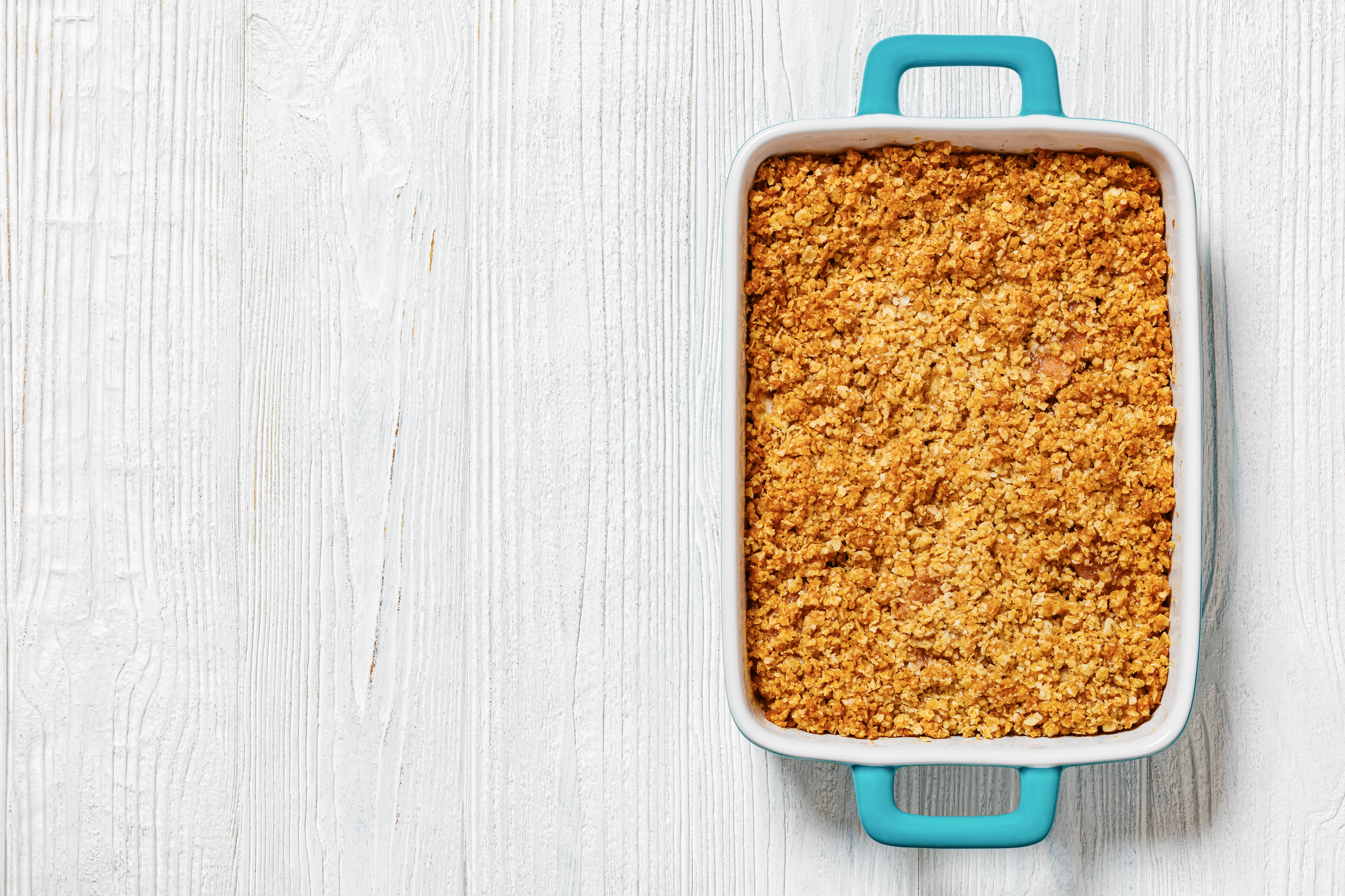 Step 8 -Sprinkle the oat mixture over the apple mixture.